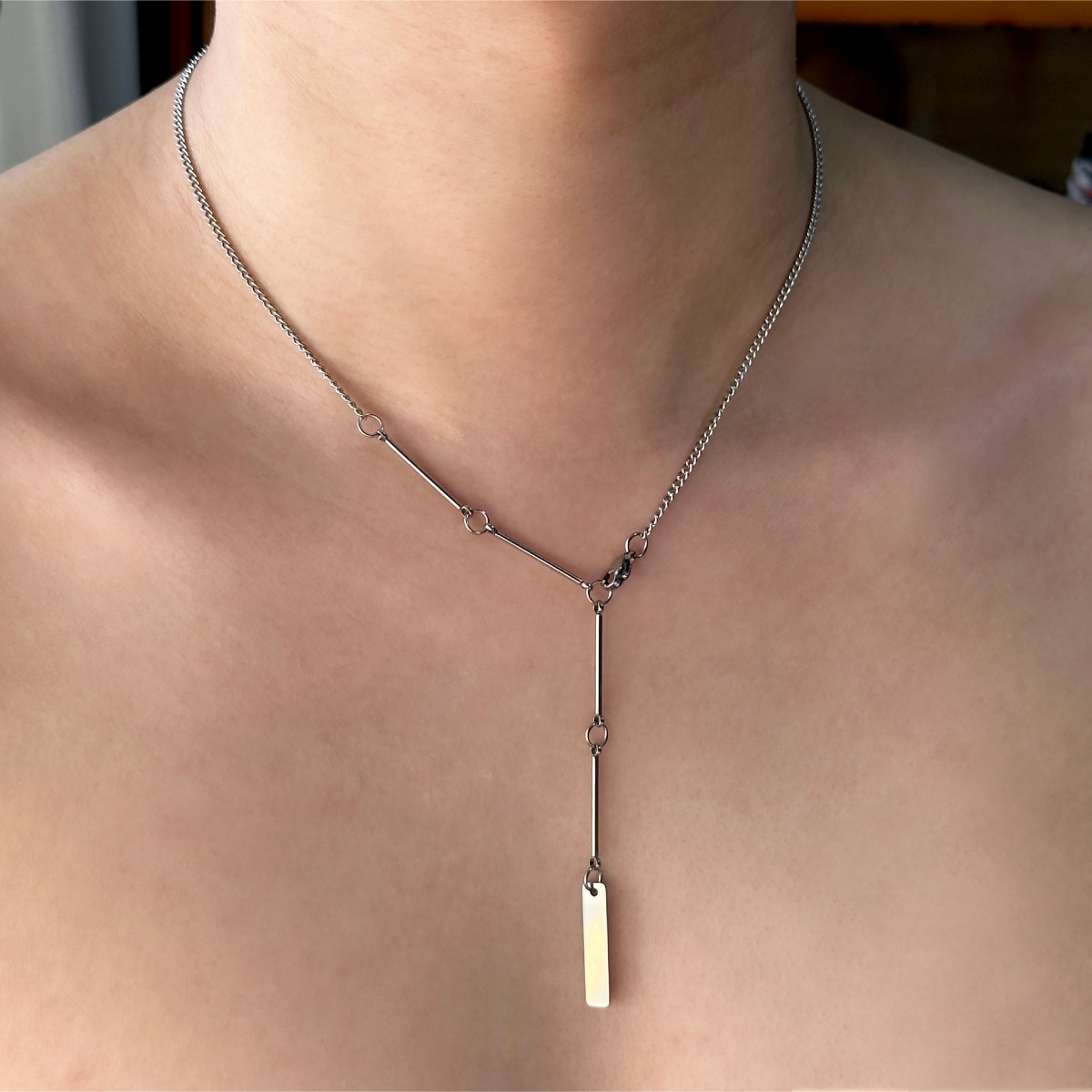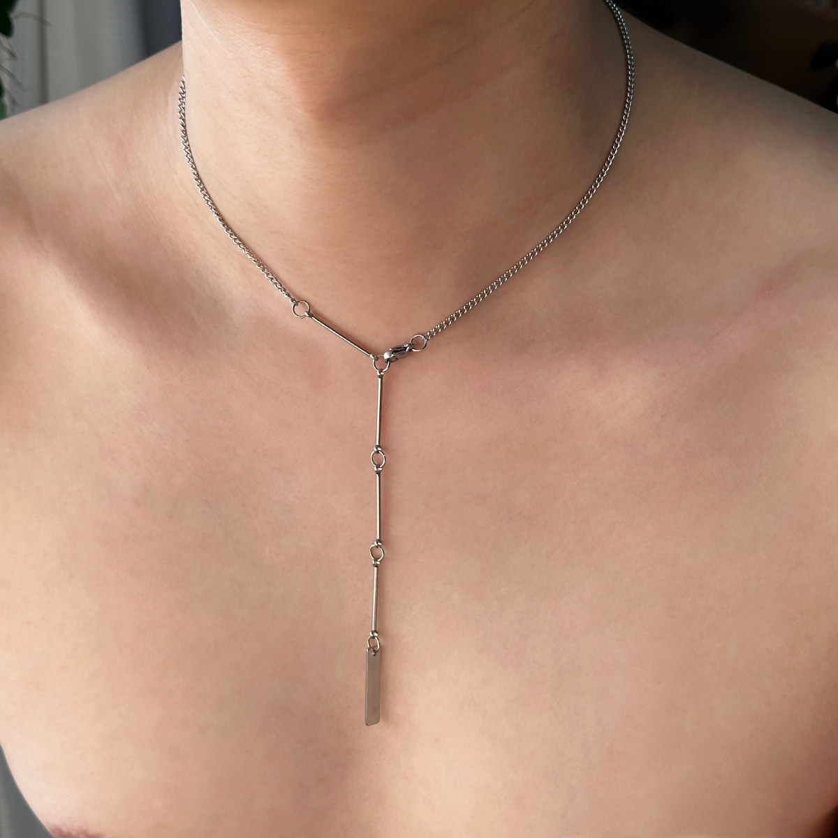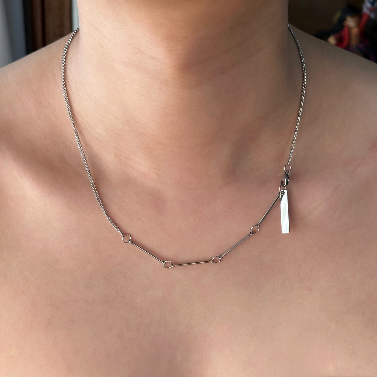 Komeiku 一链多戴 Y字形竹节素链 欧美中性高级感钛钢锁骨项链