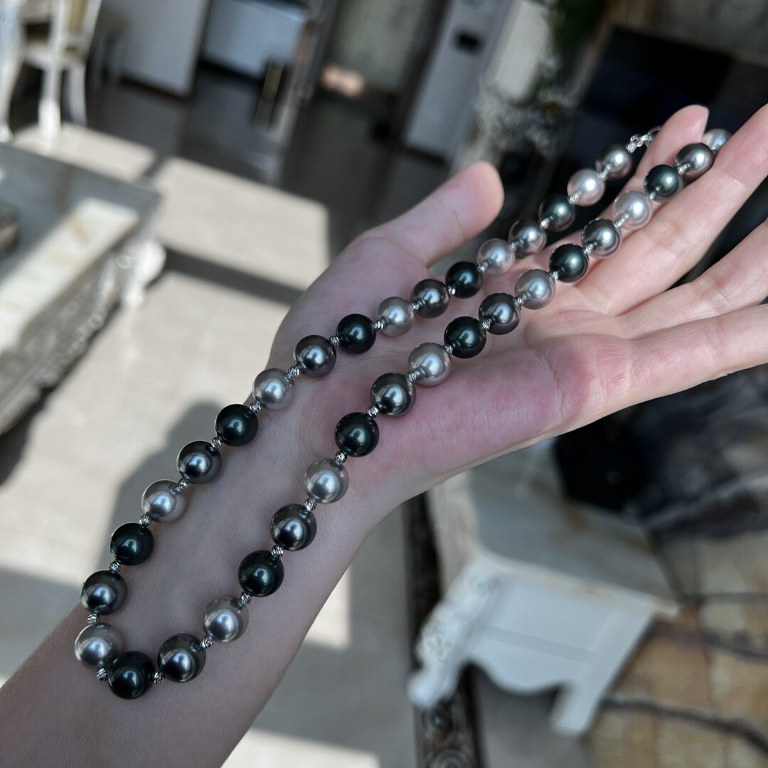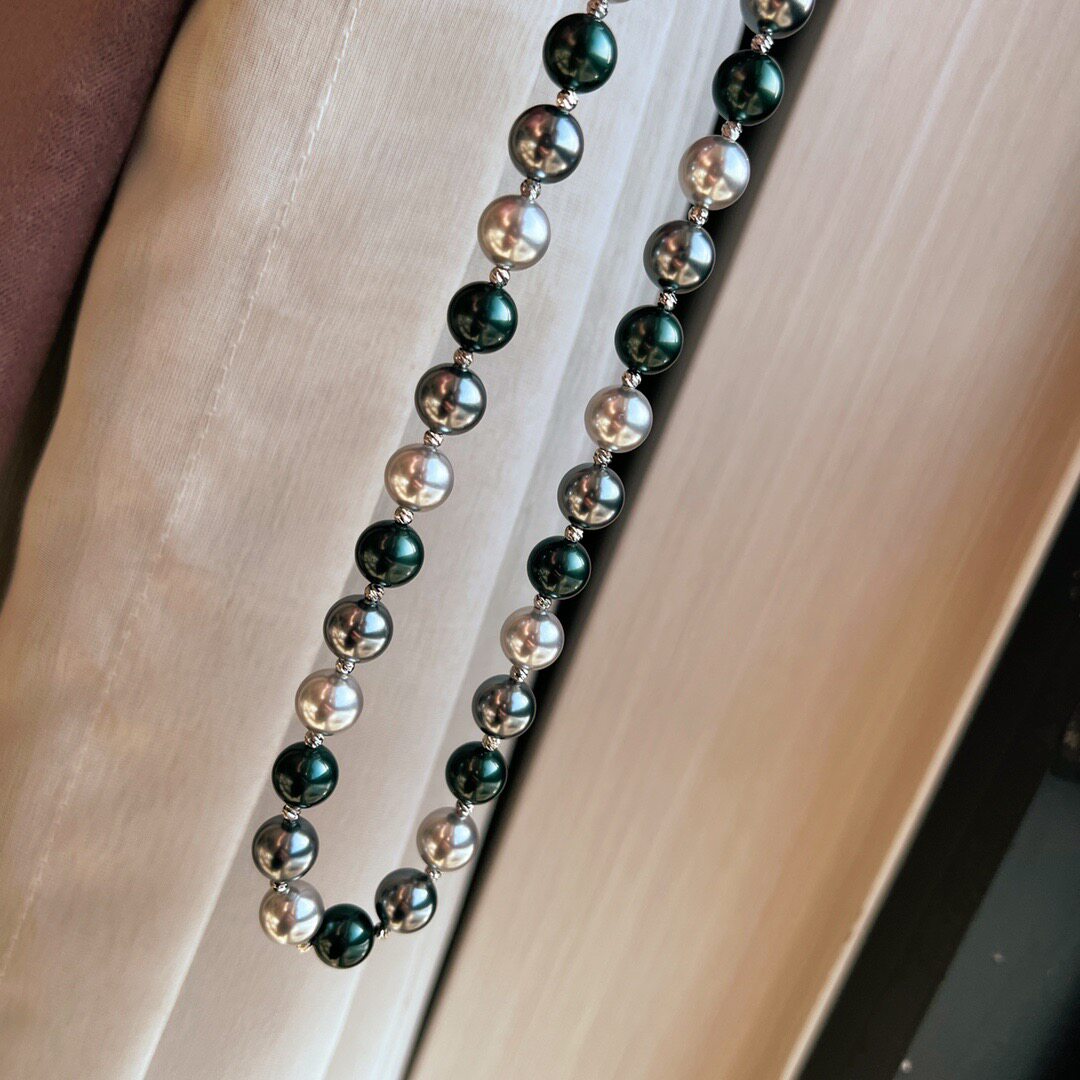 高品质混彩大溪地色真多麻灰色人造珍珠项链女轻奢小众高级感颈链