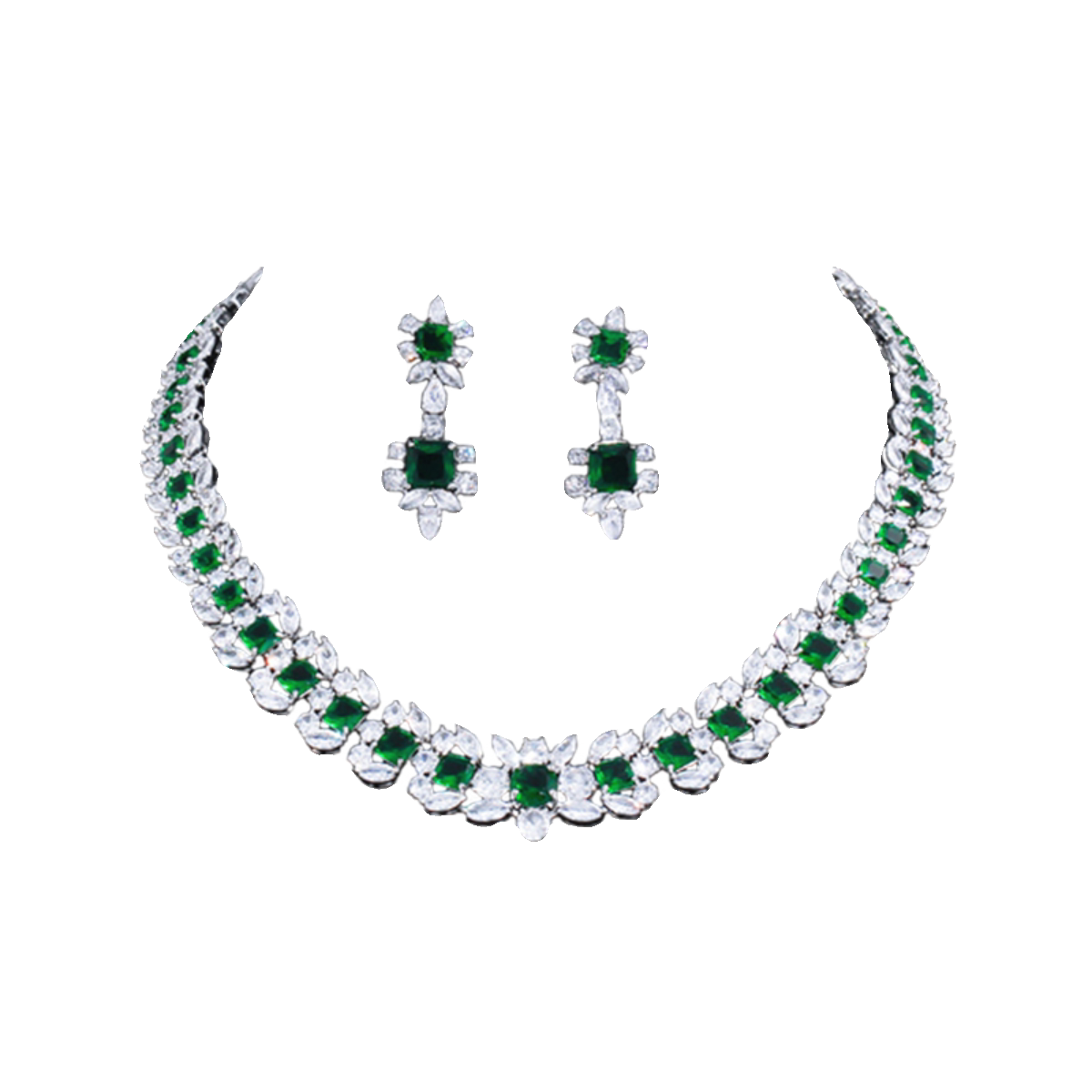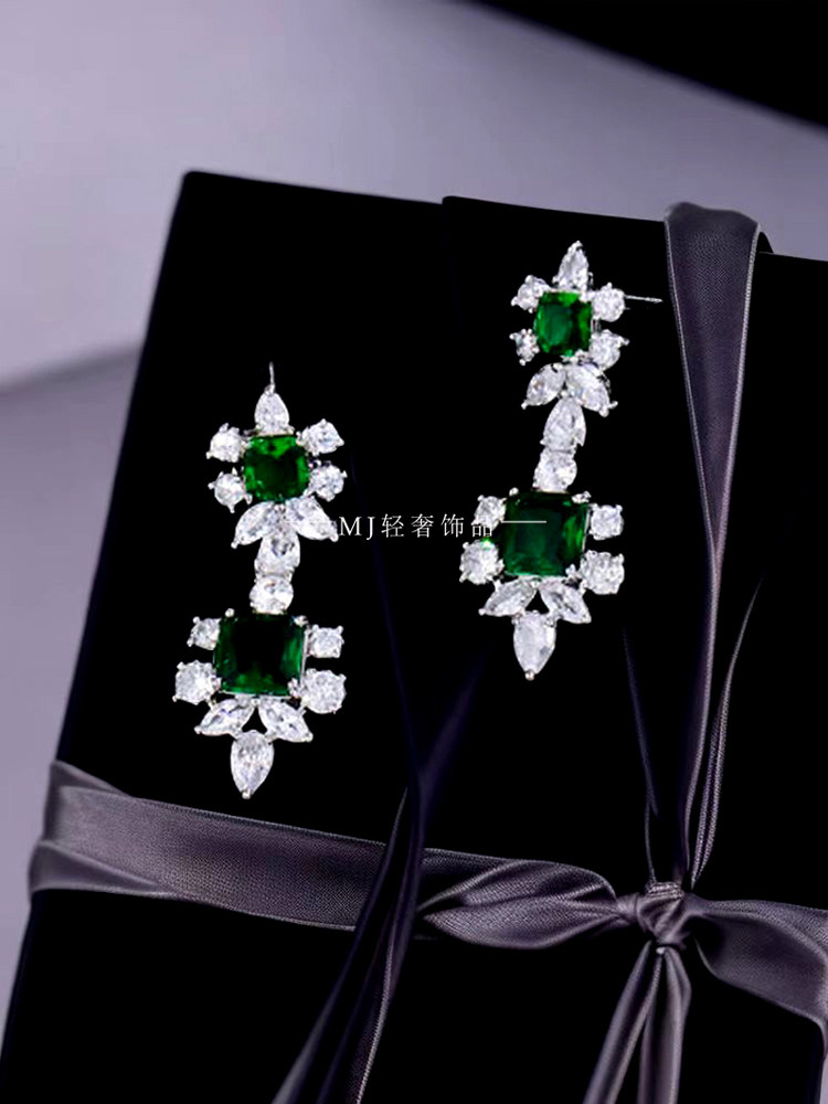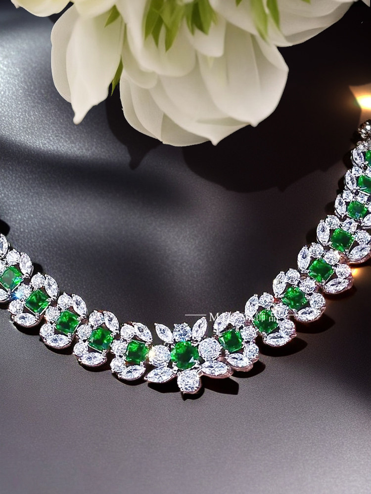 MJ轻奢饰品高级感珠宝绿色锆石项链耳环套装宴会礼服首饰奢华大牌