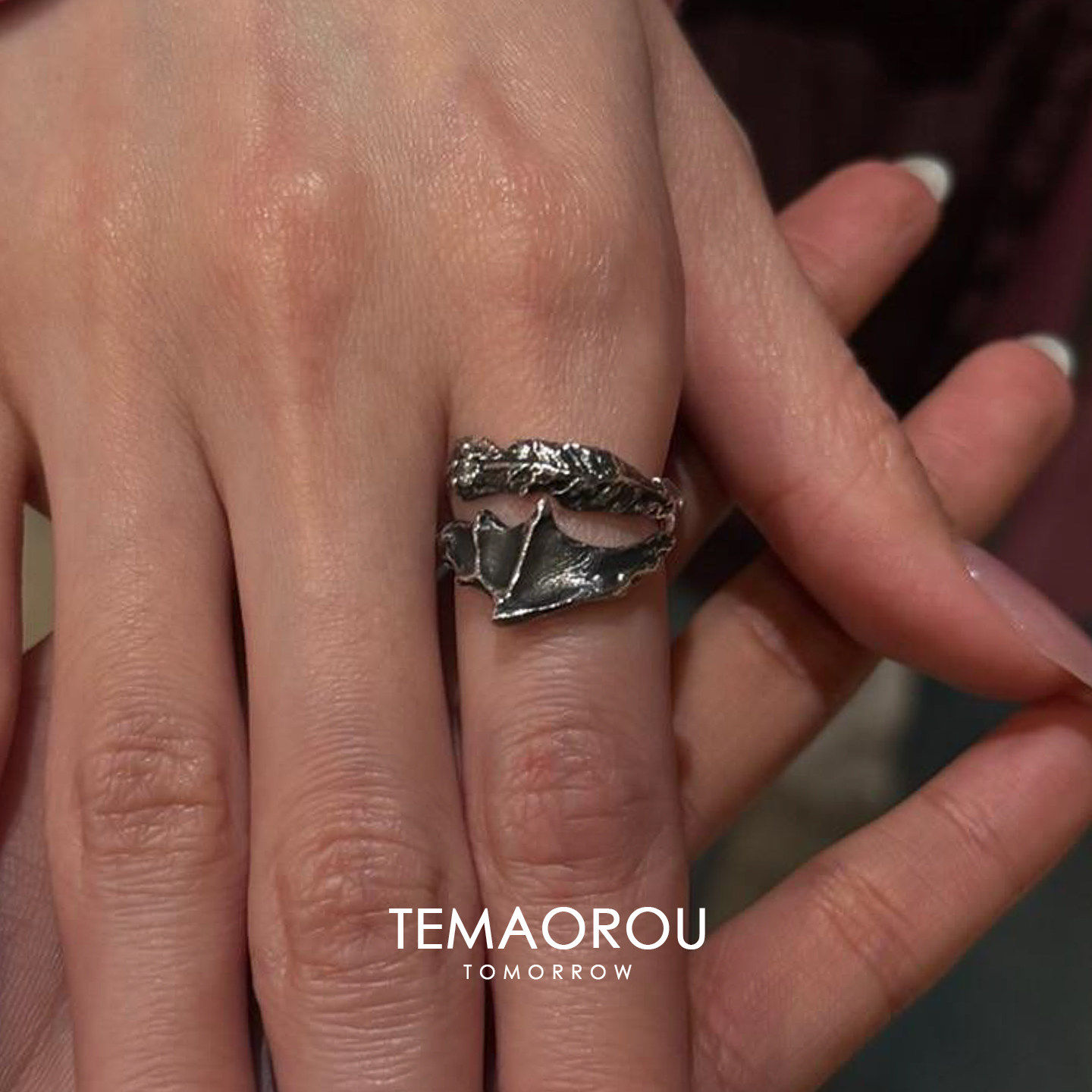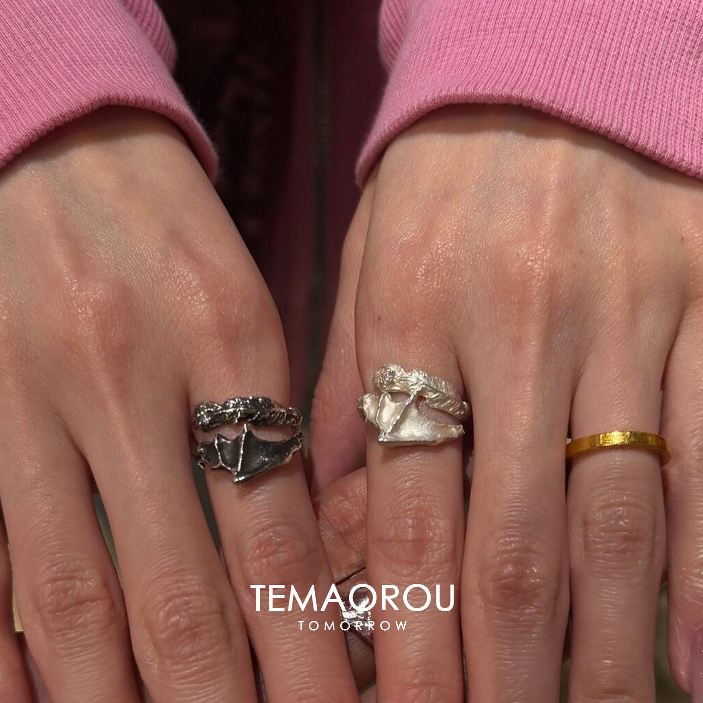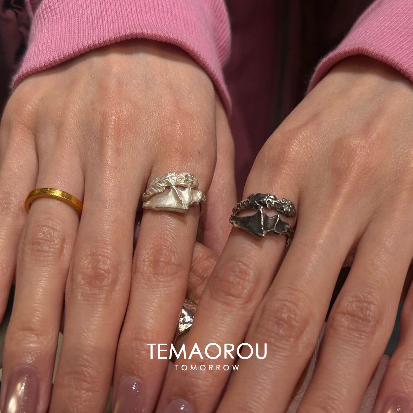 暗黑系双层一体做旧黑色戒指女2026新款高级感食指戒小众设计指环