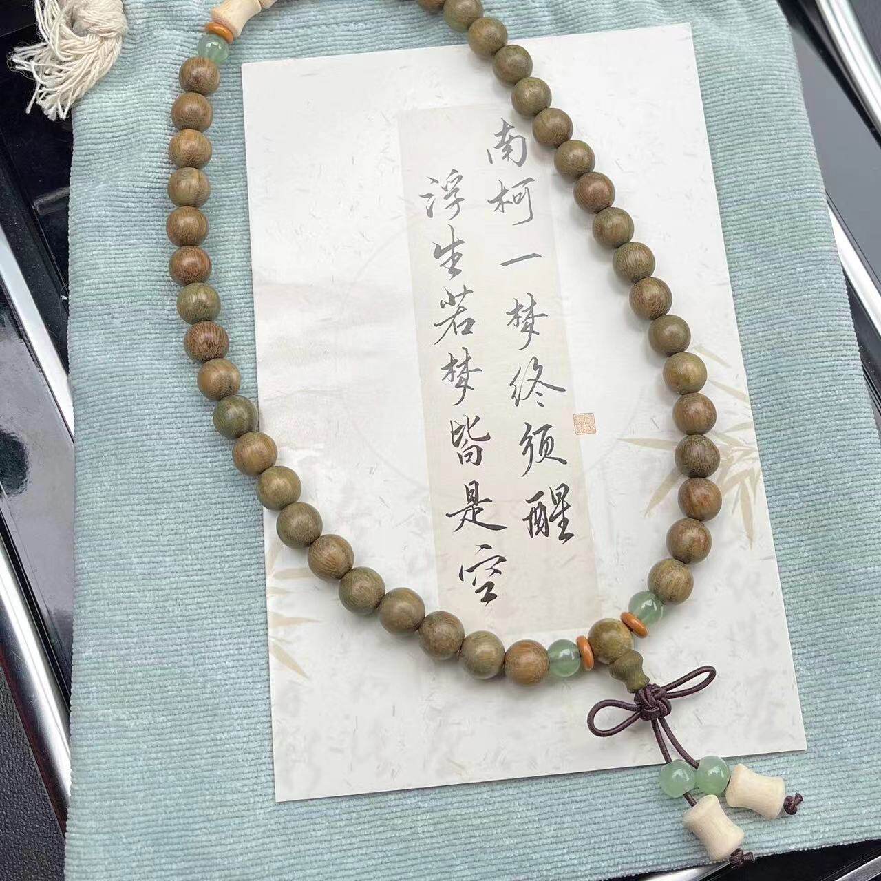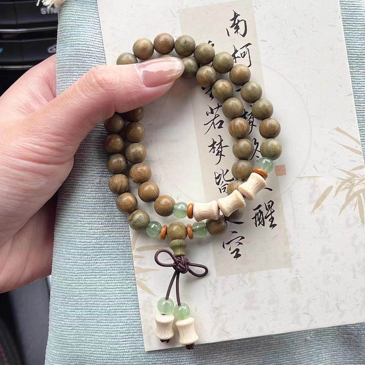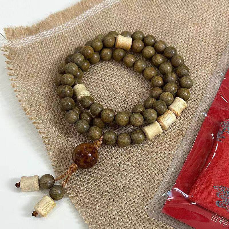 天然绿檀木木质手串竹节配饰新中式双圈串珠手链文玩手串首饰品