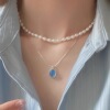 清新海洋风海蓝宝项链灵动造型设计如海浪般的流线搭配深邃蓝色
