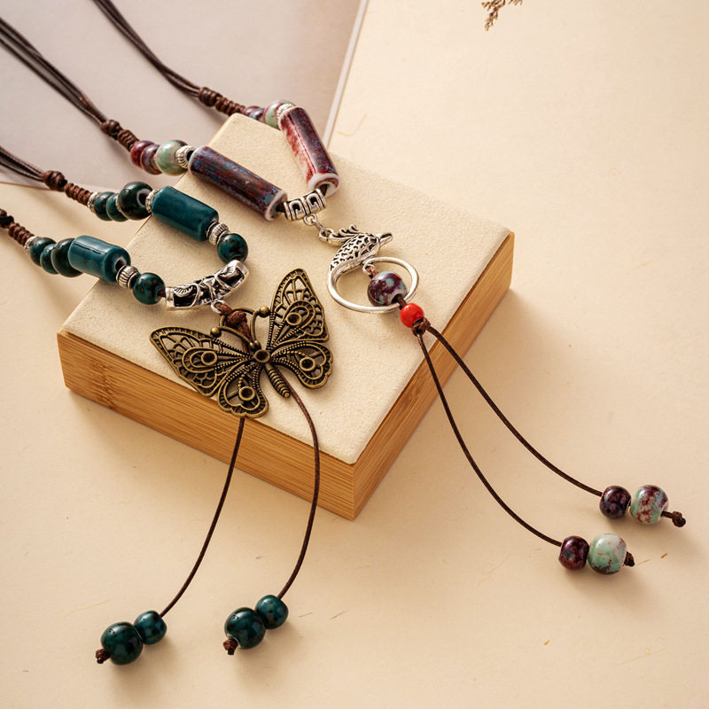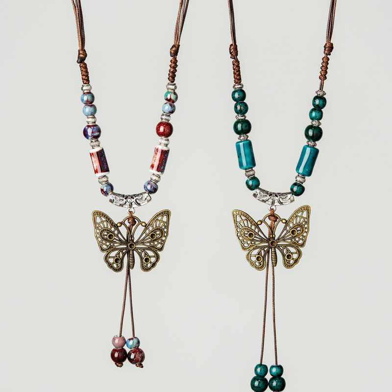 国风马面裙上衣搭配项链配饰新中式蝴蝶璎珞流苏吊坠古风汉服旗袍