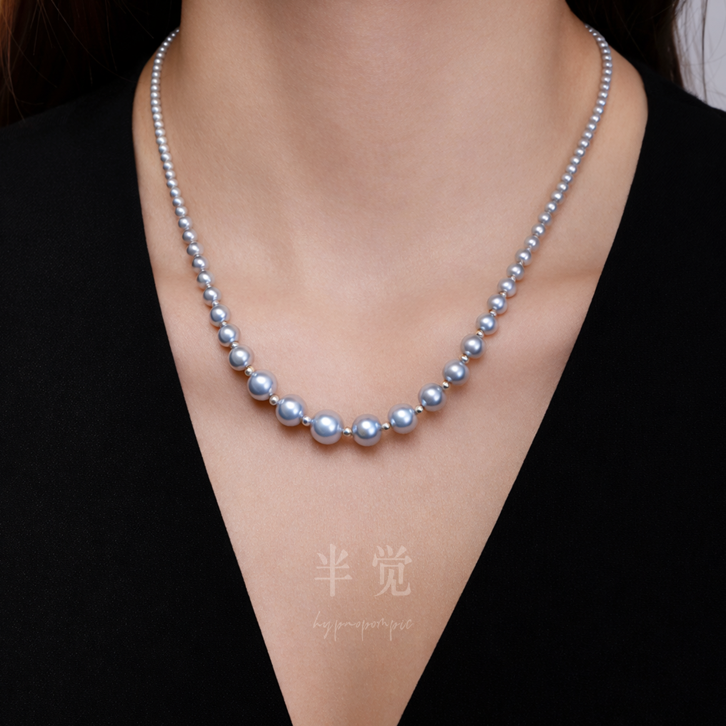 半觉灰色系大小珠渐变绝色百搭高级感通勤简约珍珠项链礼物可开票