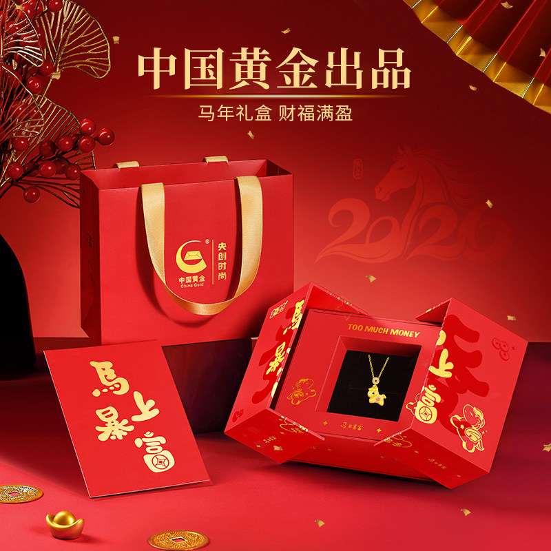 中国黄金央创马年本命年小马项链纯银999女款新年礼物送女友闺蜜