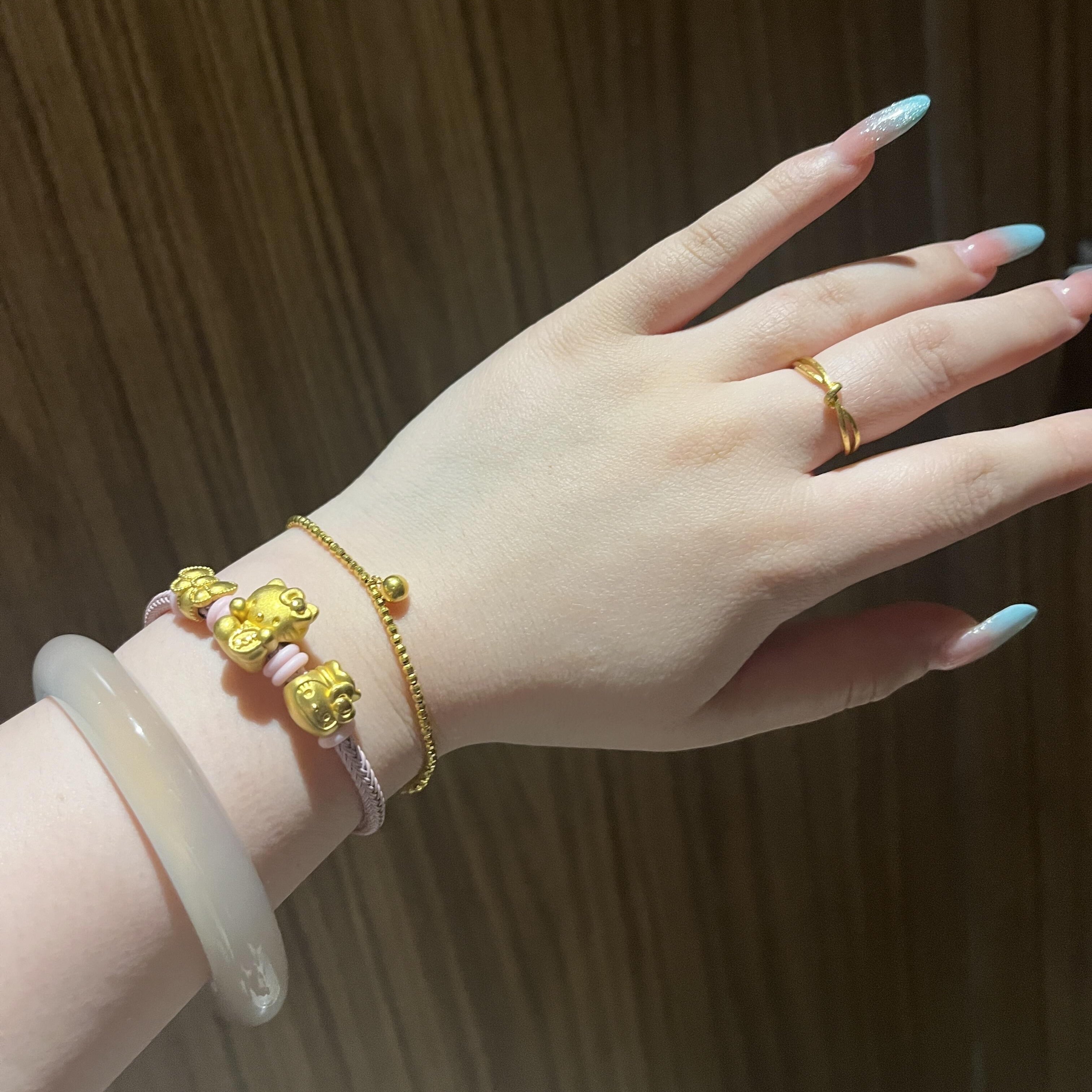 正品足金999hello kitty千万两黄金KT猫蝴蝶结送老婆七夕礼手绳