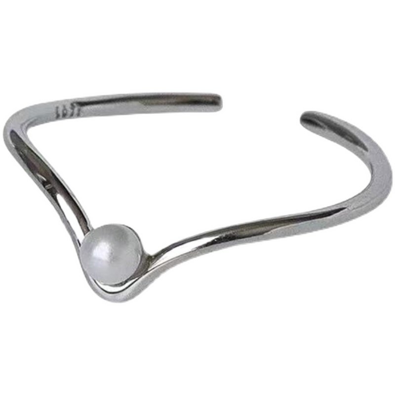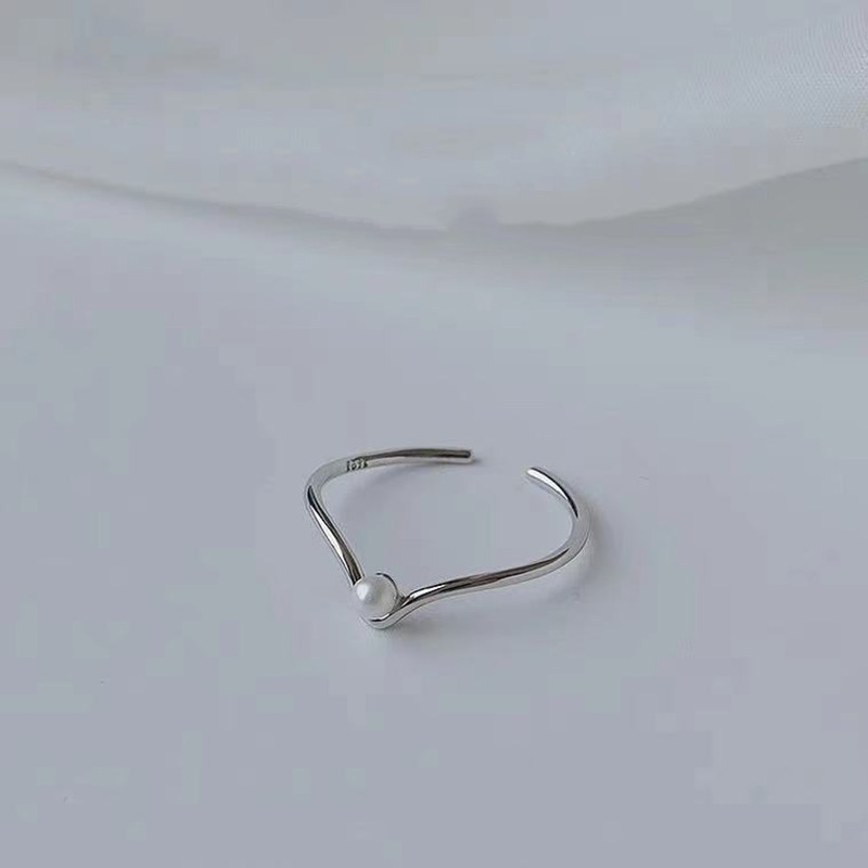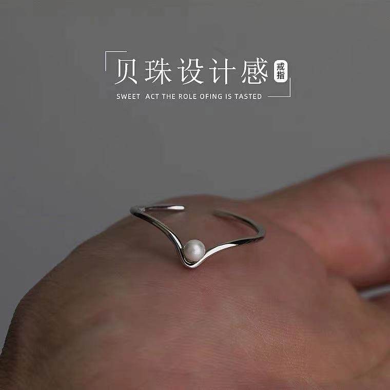 s925纯银v字珍珠戒指女高级简约小众设计食指指环细戒轻奢冷淡风