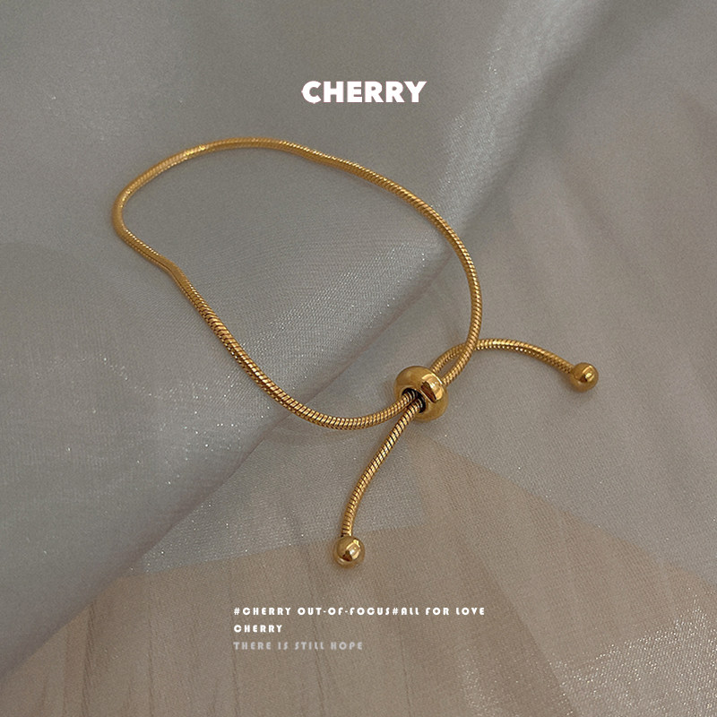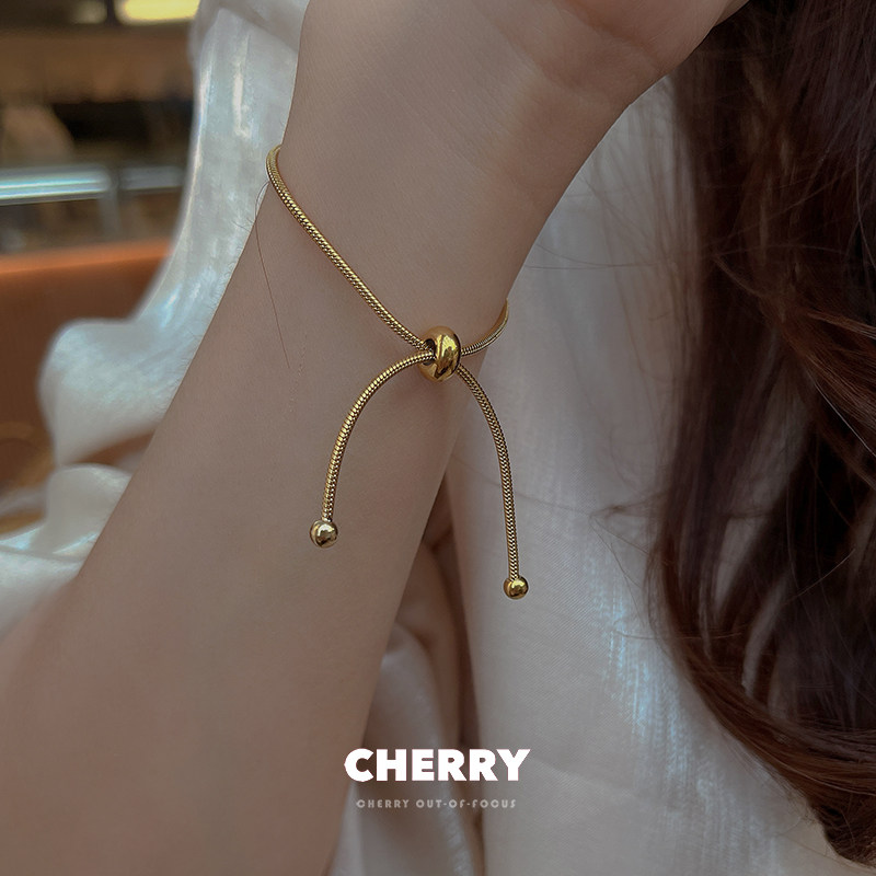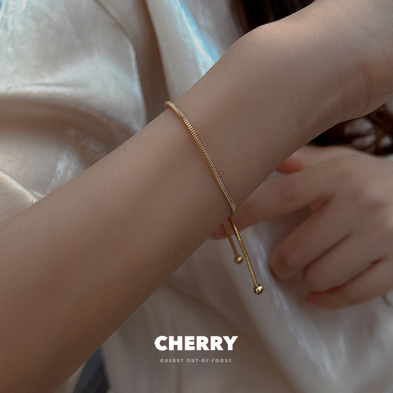 樱桃失焦钛钢不掉色可调节抽拉式手链女ins小众设计简约金色手饰