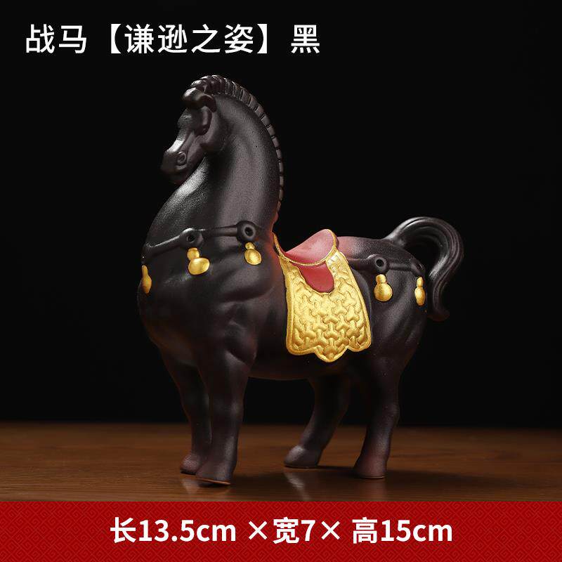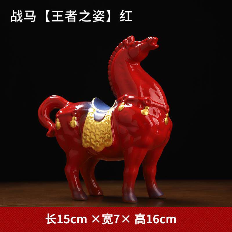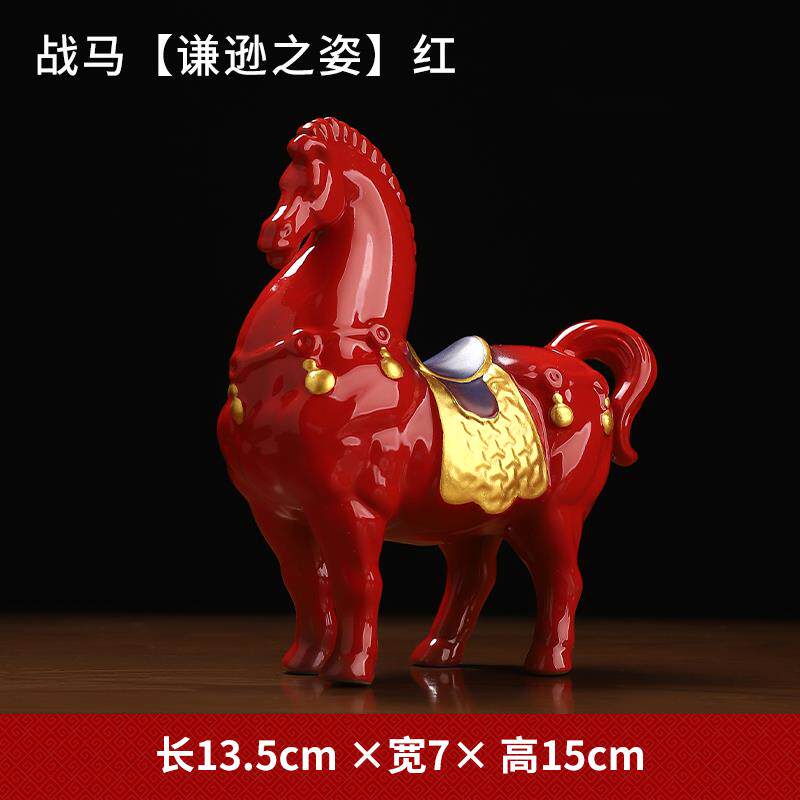 正品方泥土中国红陶红色战瓷马摆件创家意居客厅办公室招财桌东面