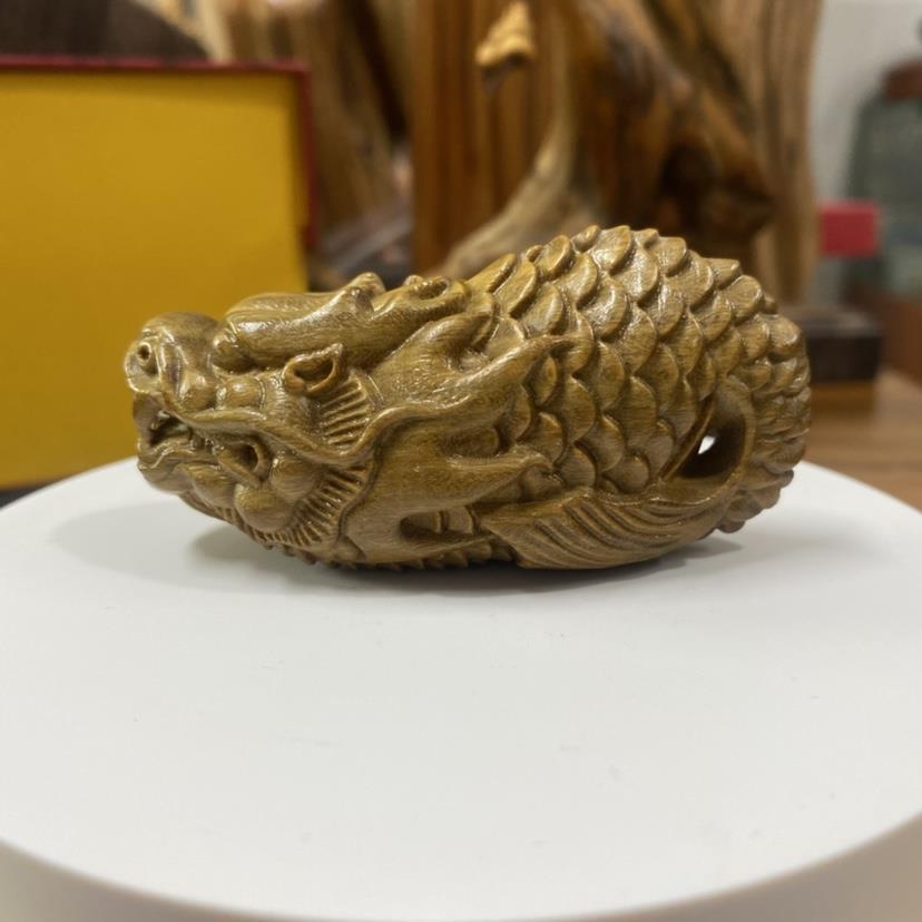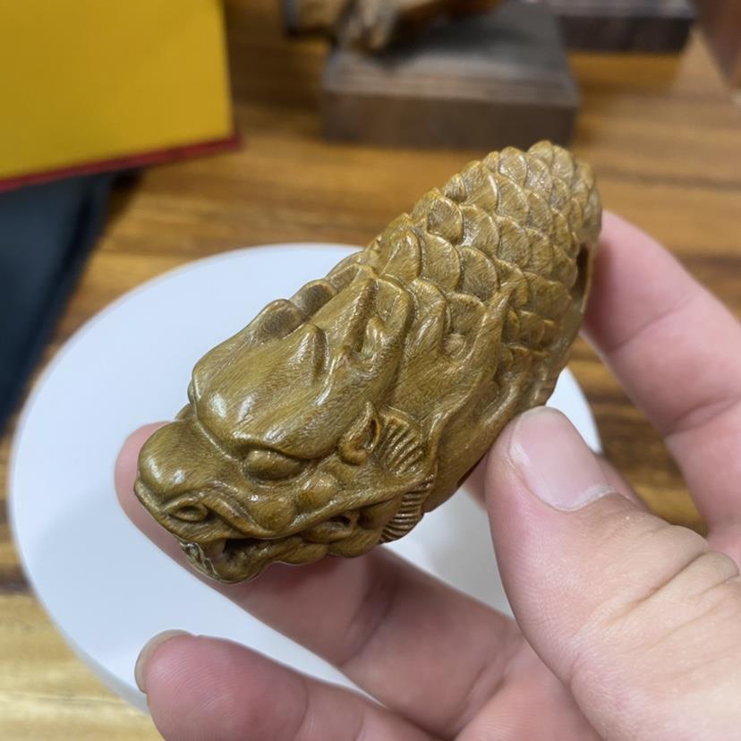 阿根廷绿檀木龙鱼手把件小摆件7.8厘米随身文玩盘玩工艺木雕摆件