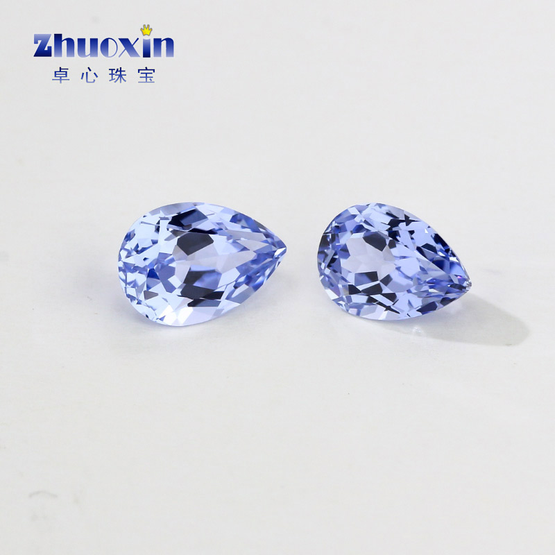 矢车菊培育彩宝水滴形裸石 实验室合成蓝宝石浅蓝色梨形精切钻