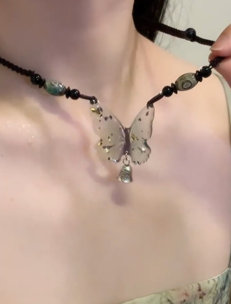 YFEIFEIE清风蝴蝶清冷项链女小众设计禅意民族风新中式复古锁骨链