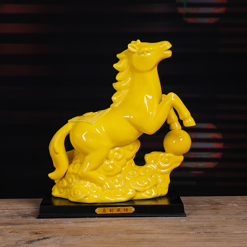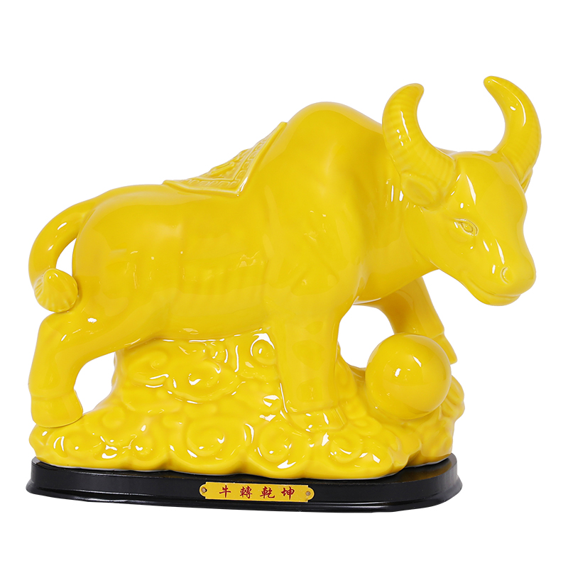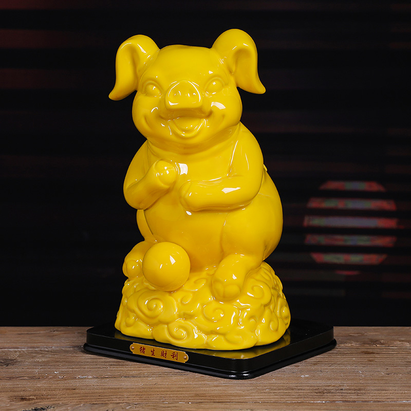 黄色陶瓷十二生肖摆件全套羊牛狗猪生肖装饰品玄关摆件