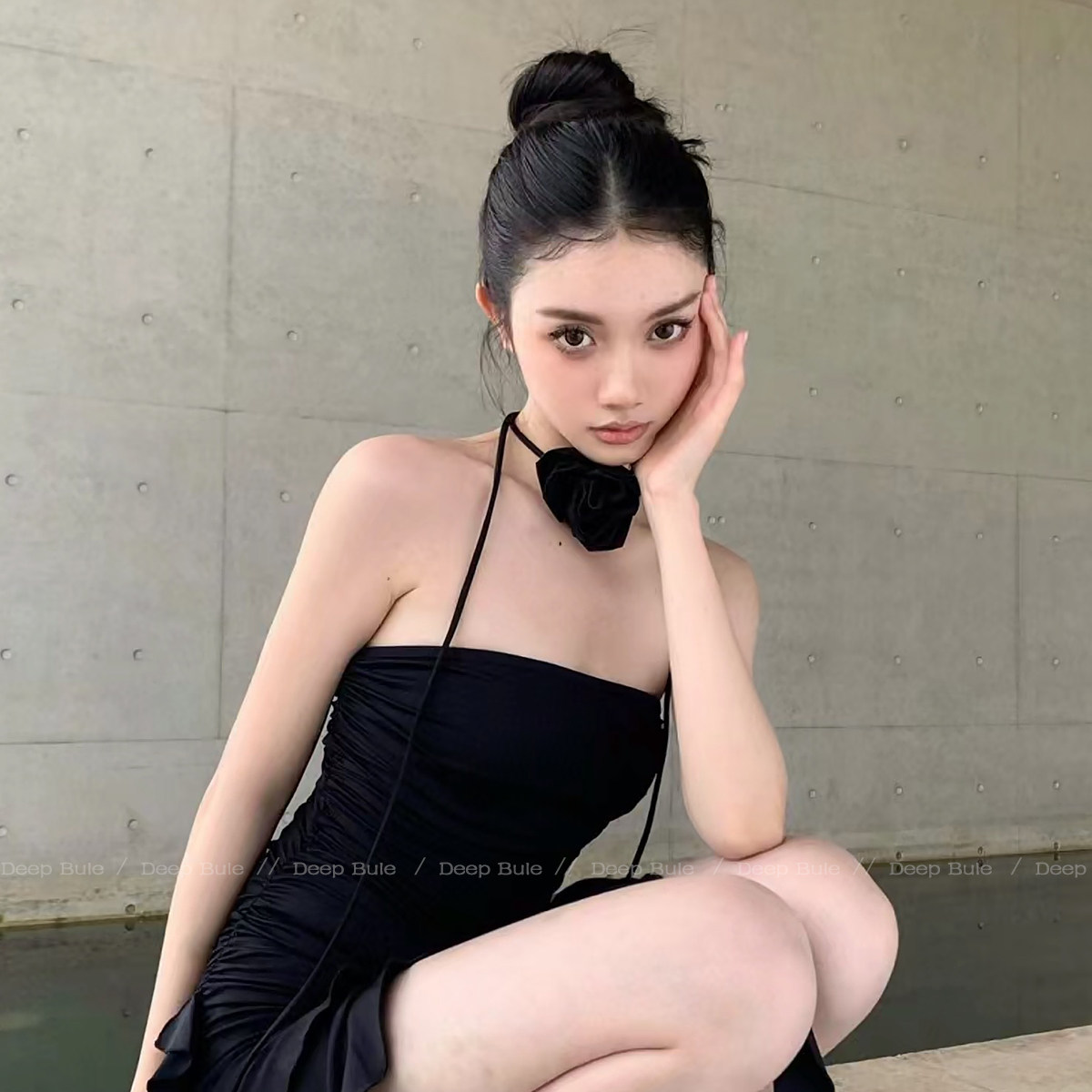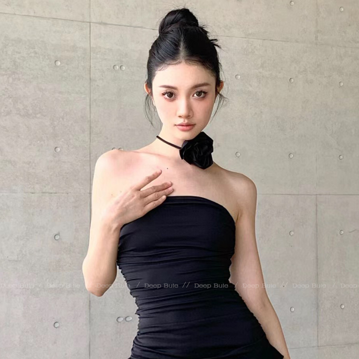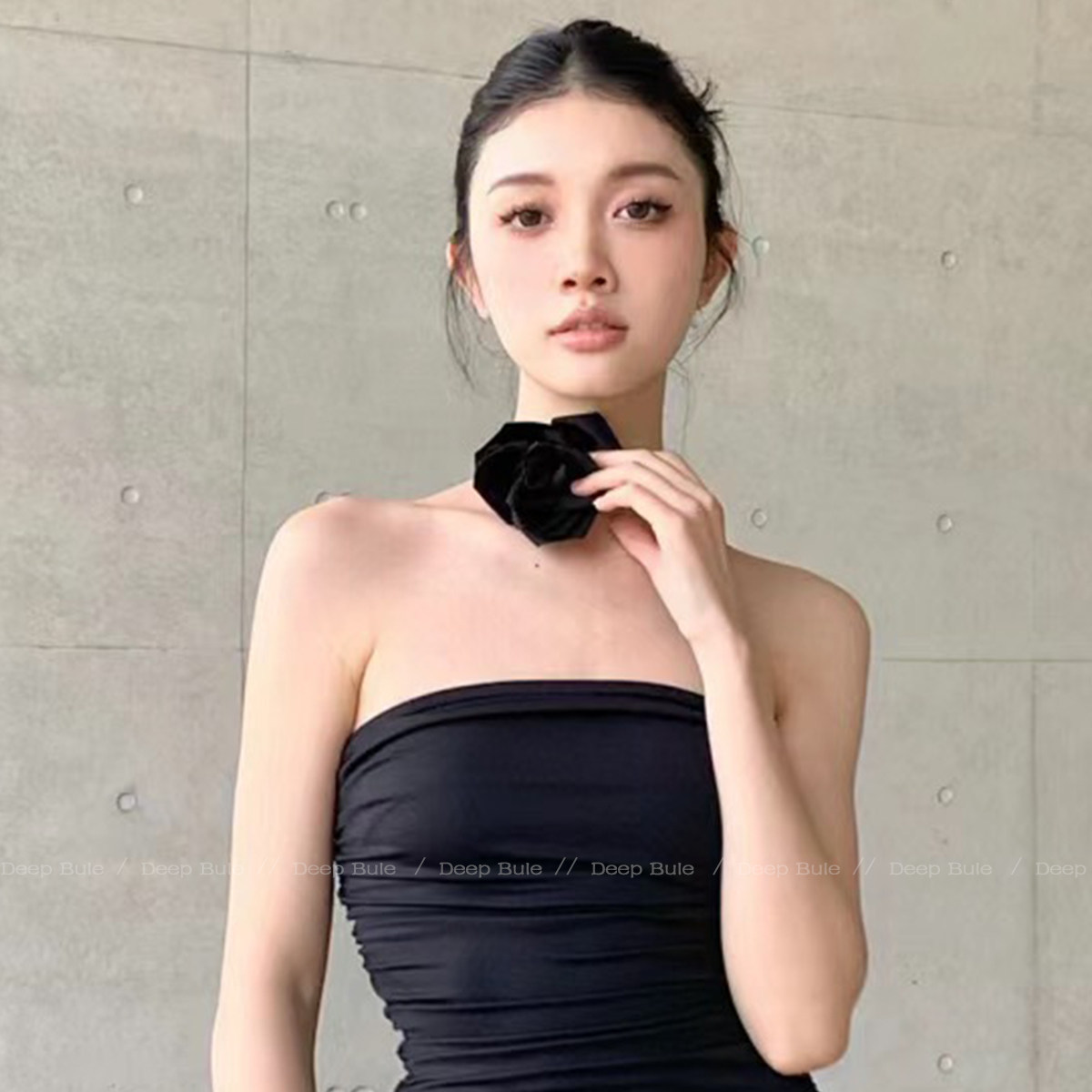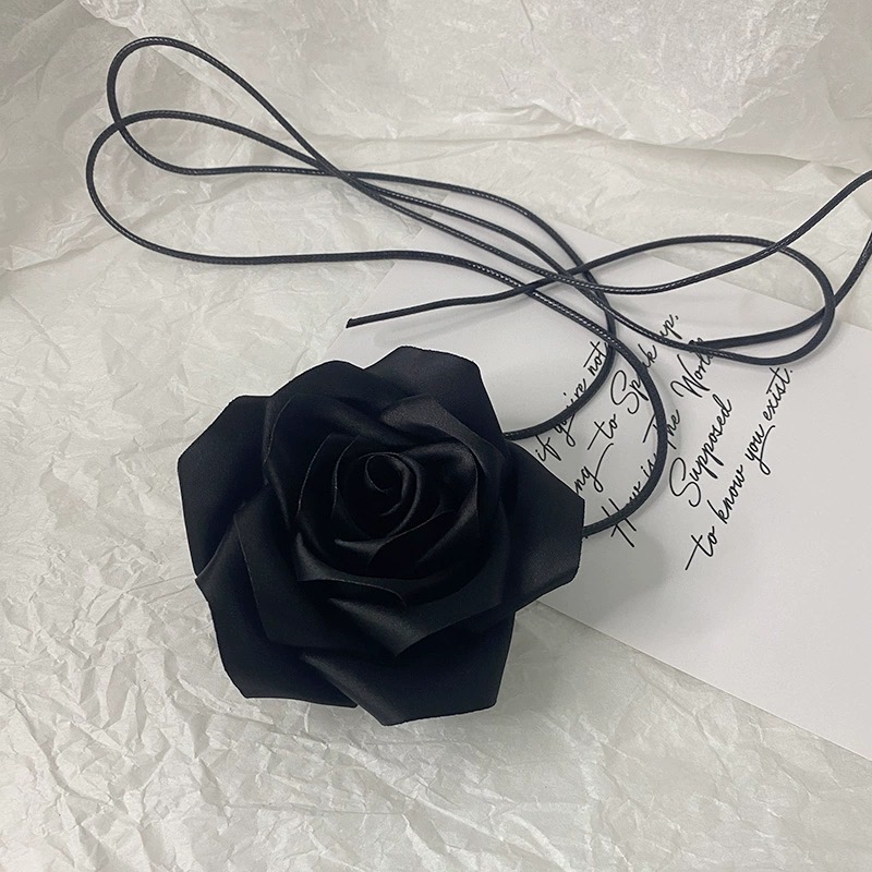 chocker黑色玫瑰花锁骨链颈链项链女高级感花朵脖子颈带颈花配饰