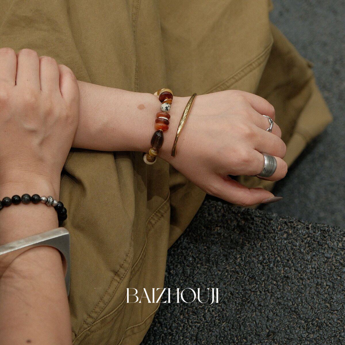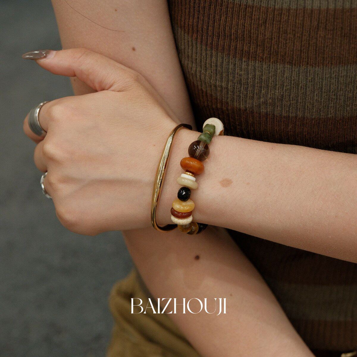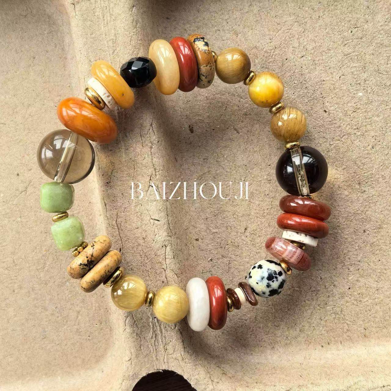 WAY OF MOON天然石璀璨拼色串珠个性时髦复古风玛瑙精致潮流手链