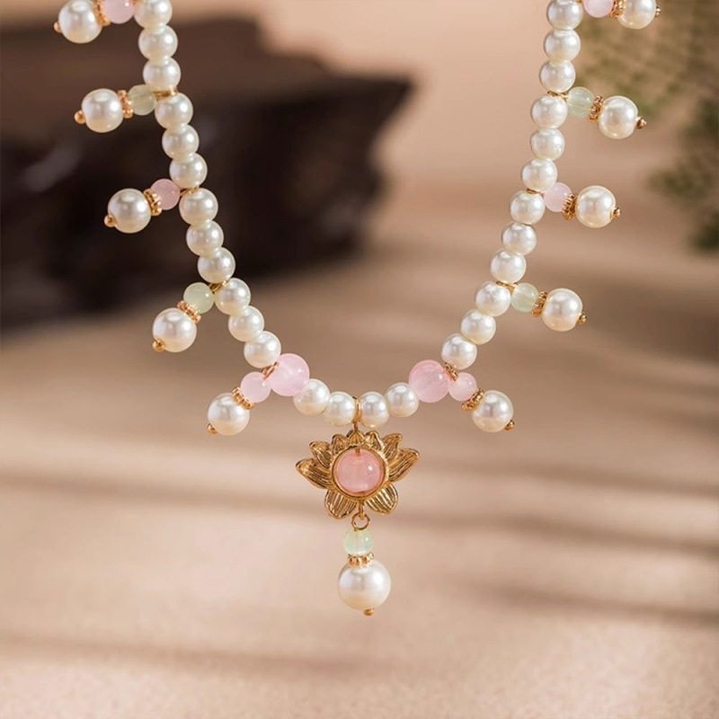【莲花】手工古风饰品女童宝宝襦裙汉服古装配饰绿色项链饰品.
