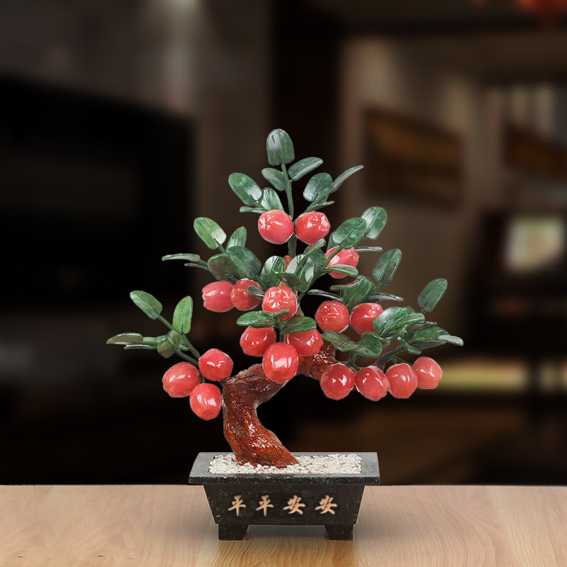 玉石苹果树盆景摆件新中式盆栽家居装饰品大吉大利客厅书房工艺品