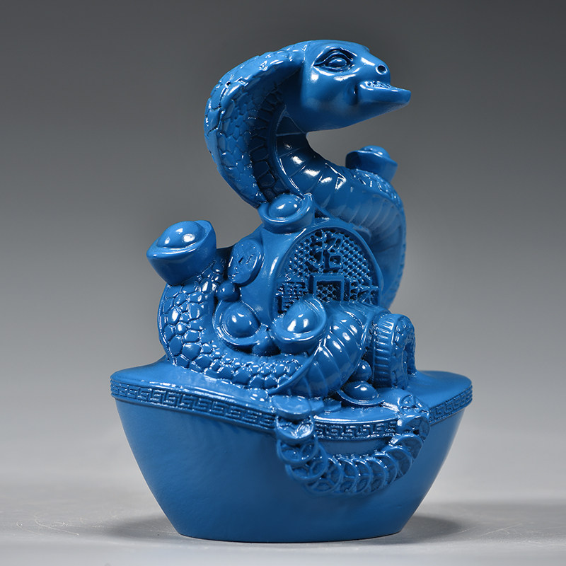 蓝色木质十二生肖蛇摆件实木雕刻眼睛蛇吉祥物木头装饰红木工艺品