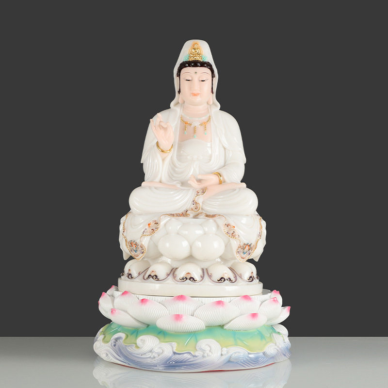 佛像底座观音菩萨陶瓷莲花座台供奉供佛圆形摆件垫高神像底座托架