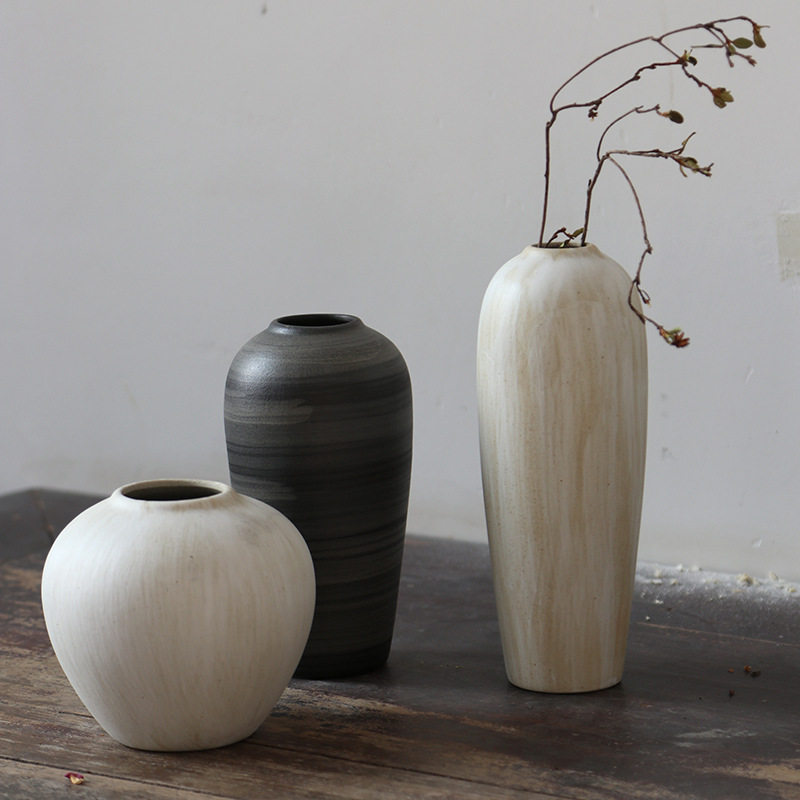 新中式禅意复古简约黑色陶艺陶瓷花瓶摆件茶桌书房装饰家居软装