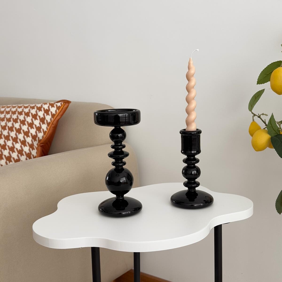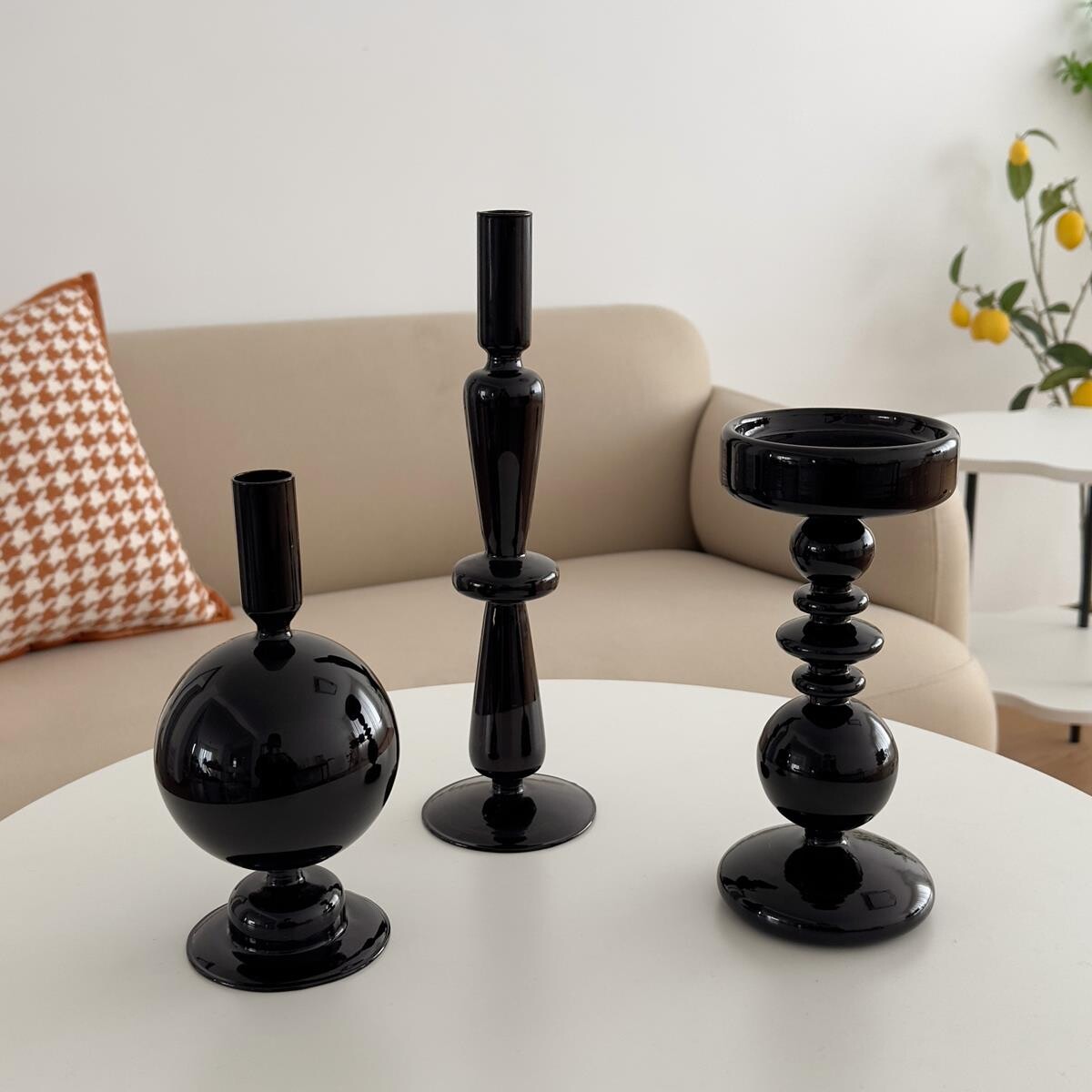 复古黑色玻璃烛台玄关电视柜客厅装饰摆件高级感小众轻奢家居饰品
