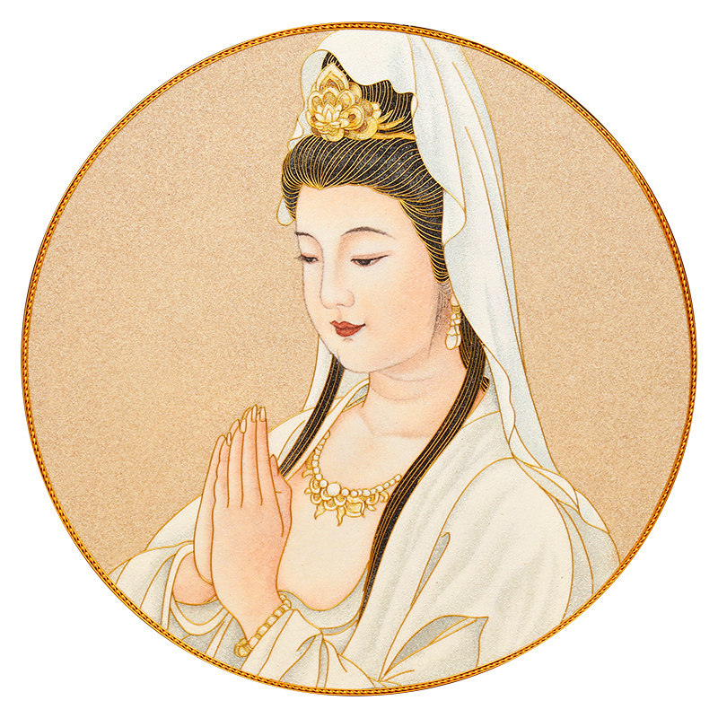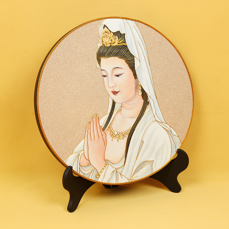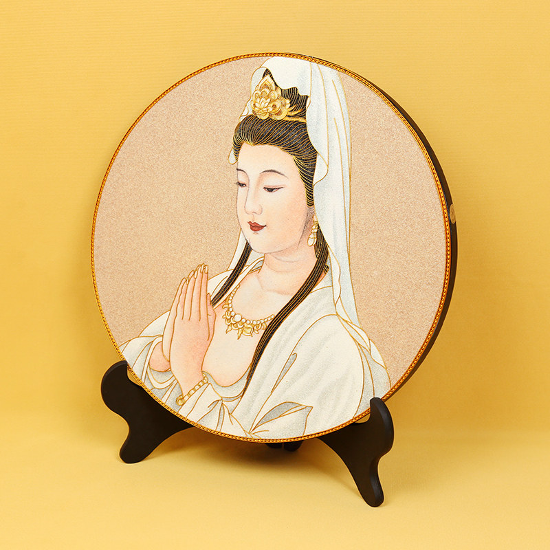 观音菩萨碳盘摆件新中式掐丝珐琅彩玄关客厅桌面坐盘纯手工礼品