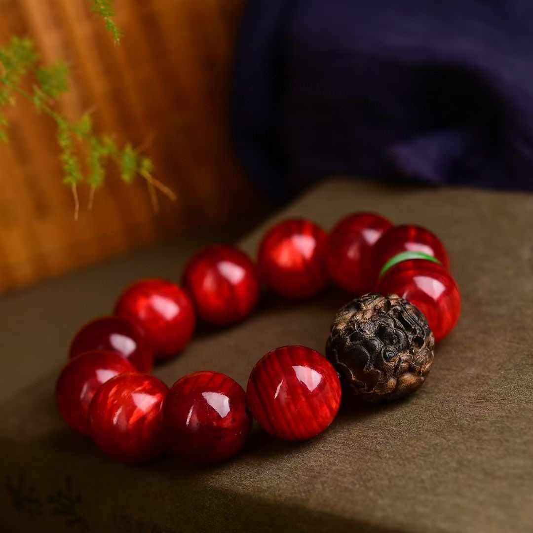 新款原创手串2.0全透血龙木搭配沉香木雕刻貔貅男女同款车挂手链
