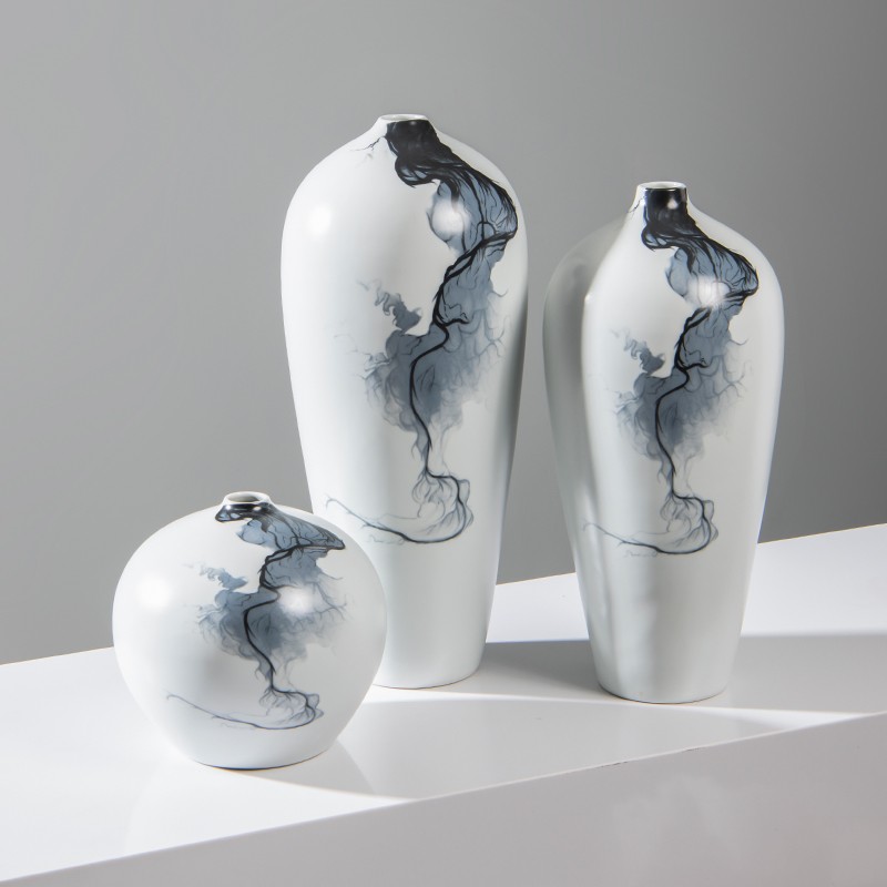 新中式禅意水墨国风陶瓷罐客厅办公室样板房售楼处插花瓶装饰摆件