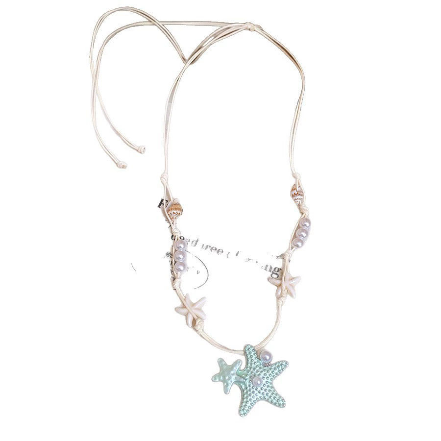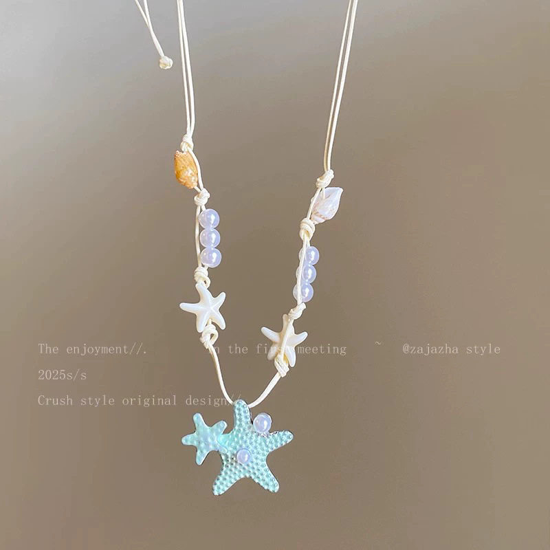 蓝色海星贝壳串珠项链女夏天海边度假风锁骨链甜美百搭氛围蓝白色