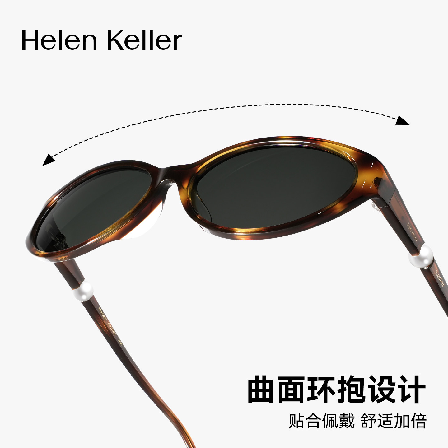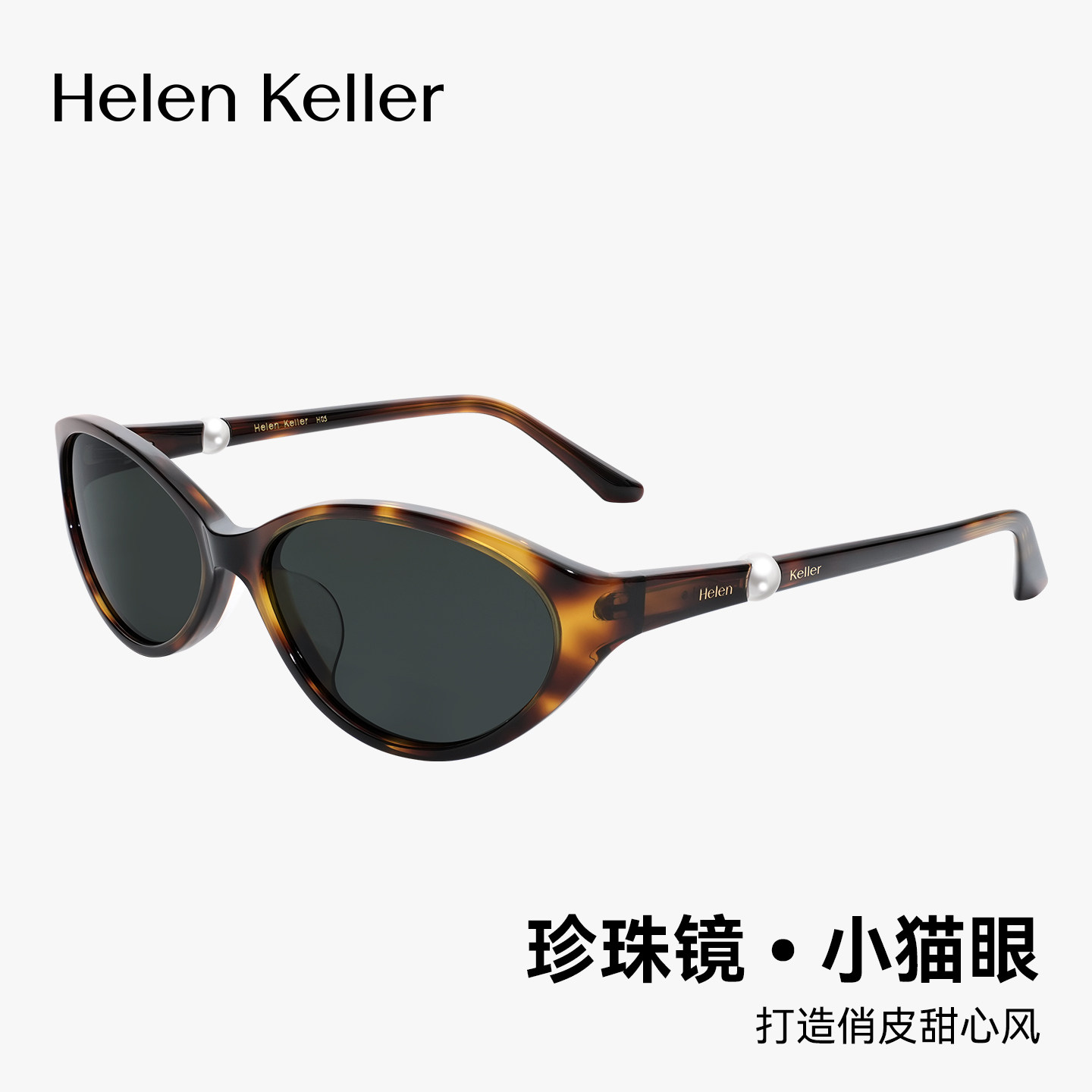 海伦凯勒26年新款时尚潮流小框猫眼太阳镜舒适板材珍珠墨镜HK628
