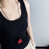 黑色皮绳哑风铃项链女复古个性小众彩色三角吊坠铃铛造型毛衣链潮