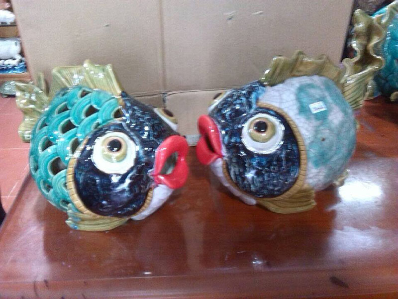 石湾公仔陶瓷灯笼鱼摆件爱情鱼接吻鱼结婚礼物电视柜婚庆礼品摆设