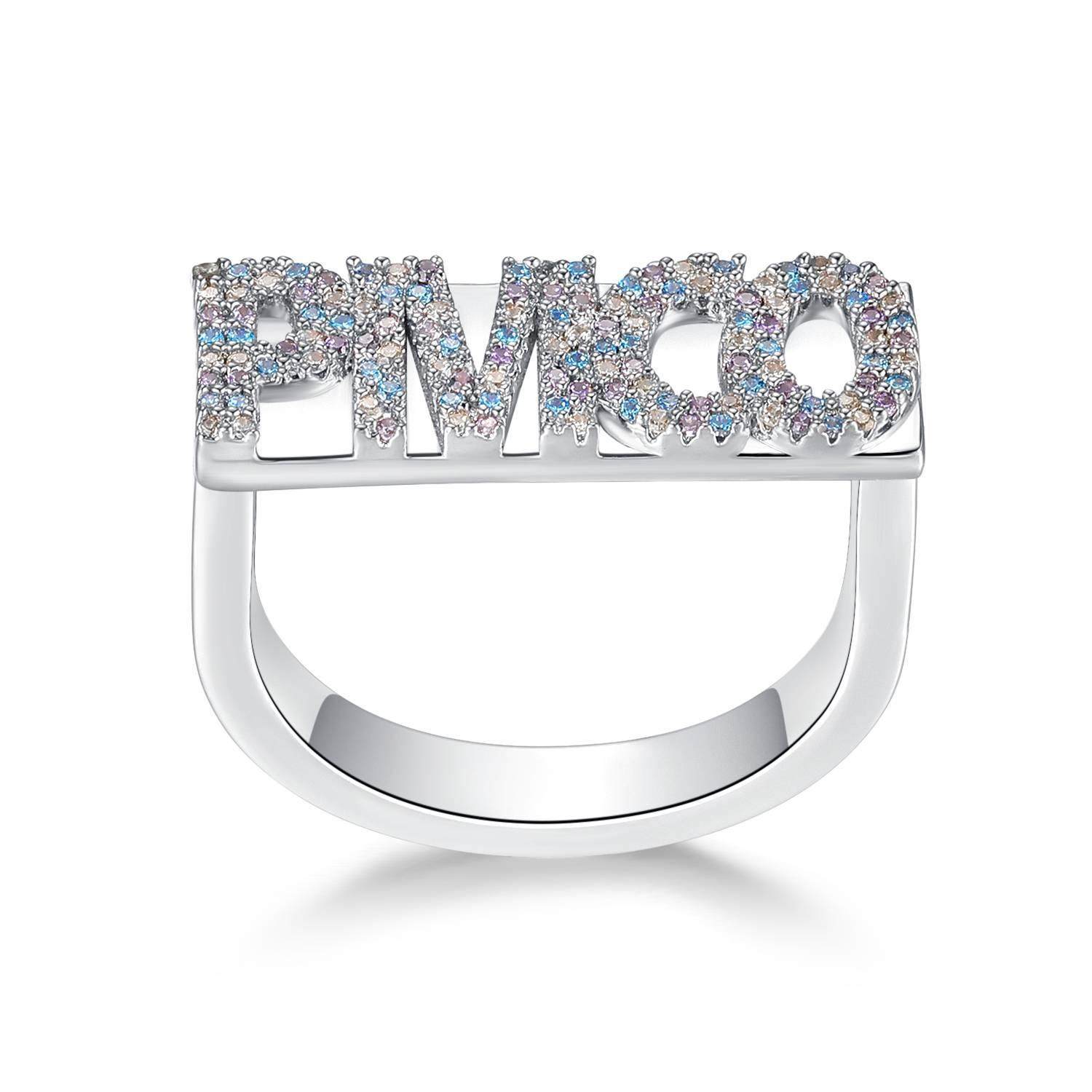 VSCH 三色PMCO字母镶钻戒指潮酷男女同款送礼物