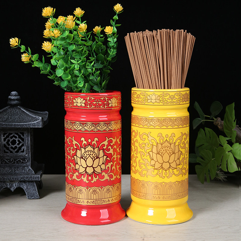 香桶家用供佛大号供佛香筒插花室内摆件陶瓷莲花香筒香桶装香插香