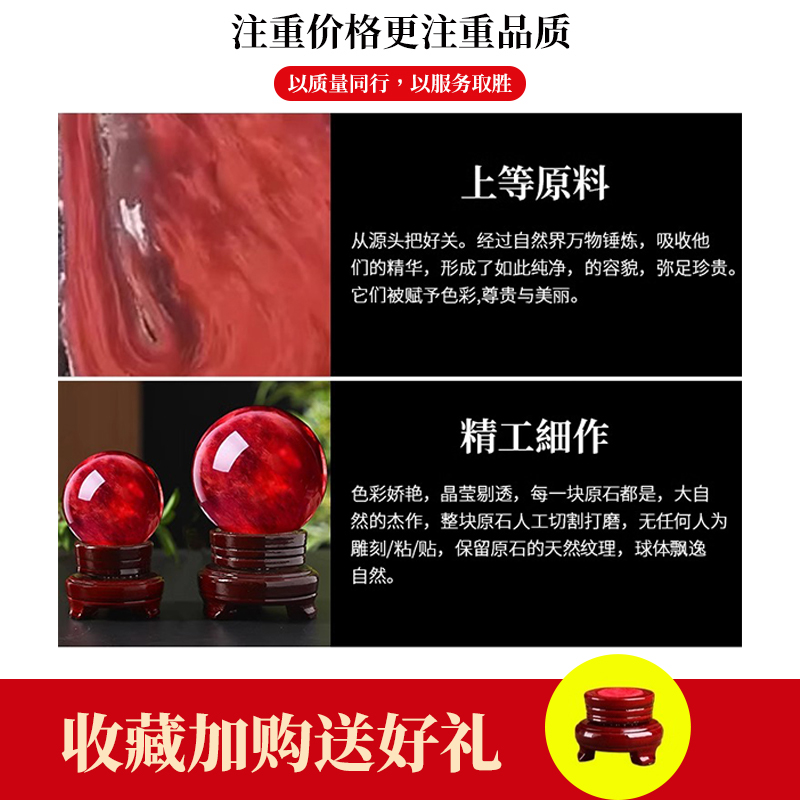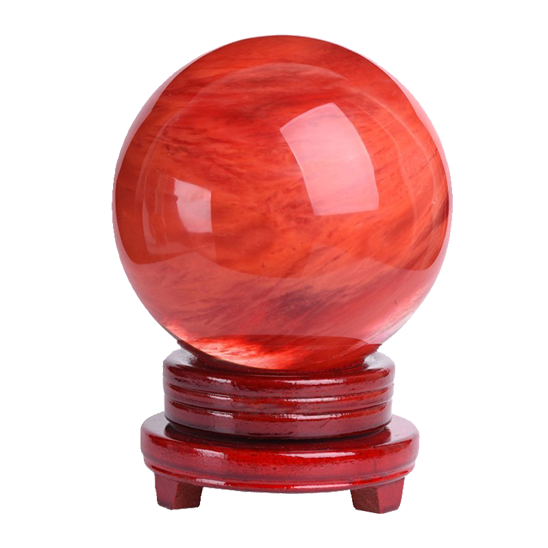 天然红色水晶球摆件招财镇宅天然原石高级感客厅装饰摆件红水晶球