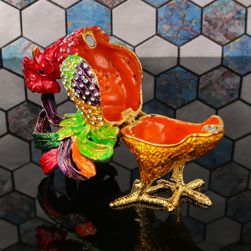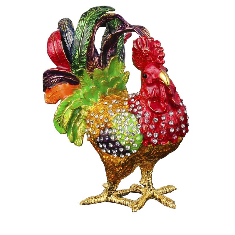 彩釉公鸡摆件鸡鸣富贵吉祥如意招财母鸡合金镶钻首饰盒装饰摆件