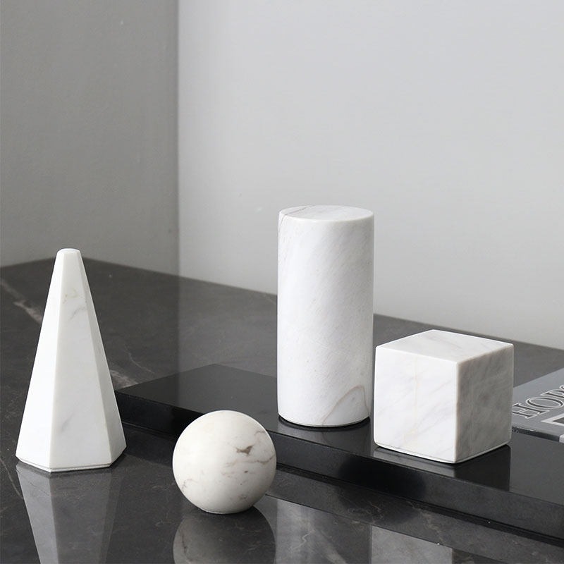 天然大理石桌面摆件黑色书房石材摆放艺术几何体圆球