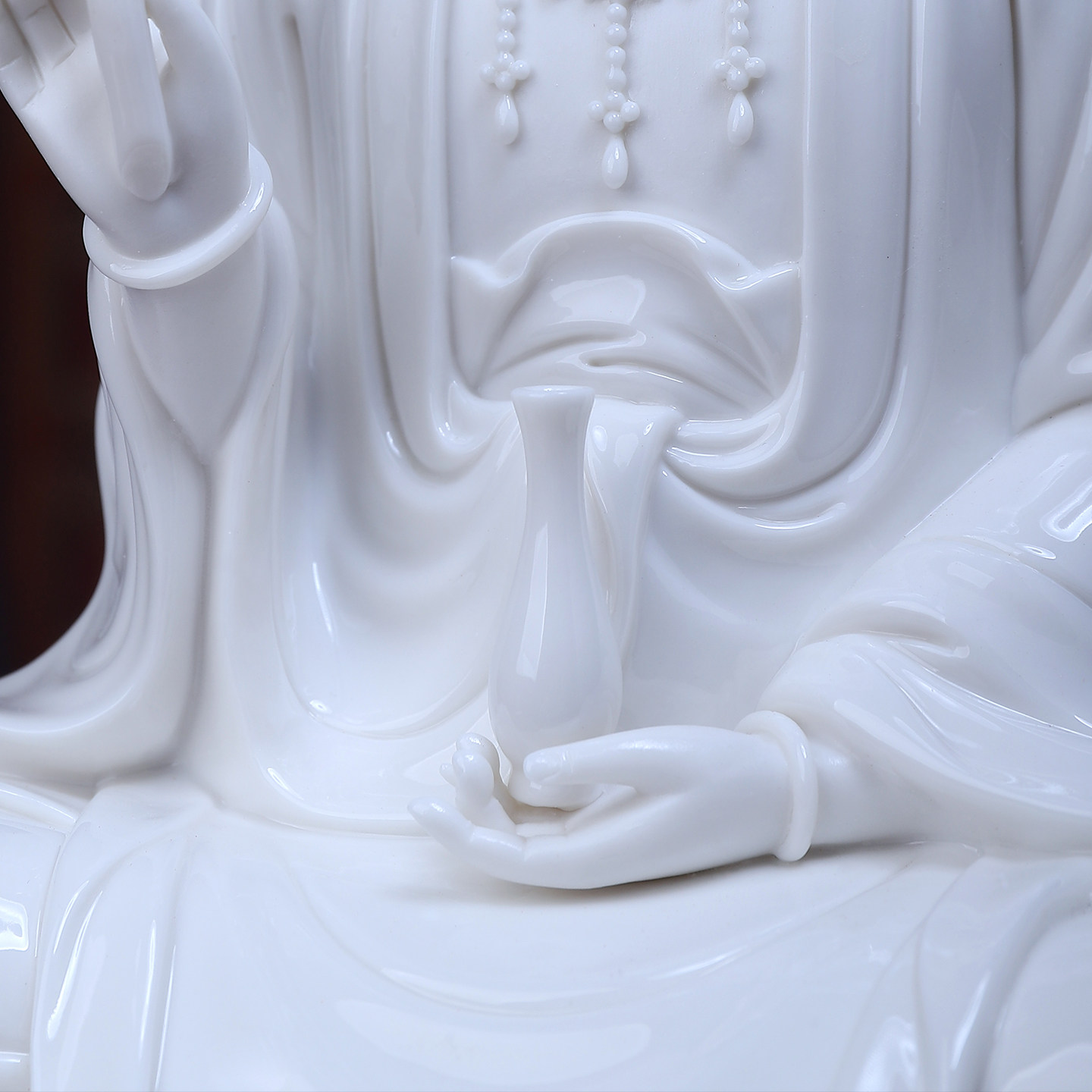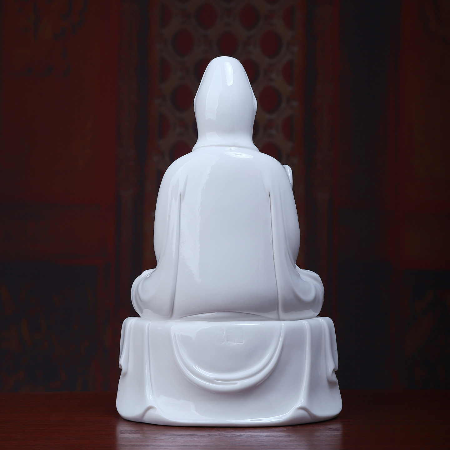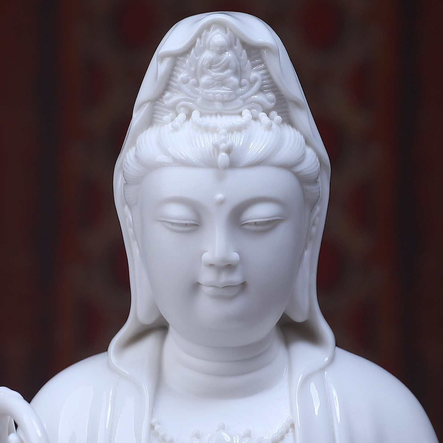 戴玉堂德化白瓷古莲观音家用客厅供奉南海观世音菩萨佛像陶瓷摆件