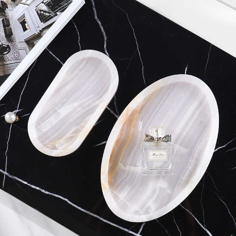 天然大理石托盘进门玄关收纳放香薰烛台钥匙饰品拍照展示高级摆件