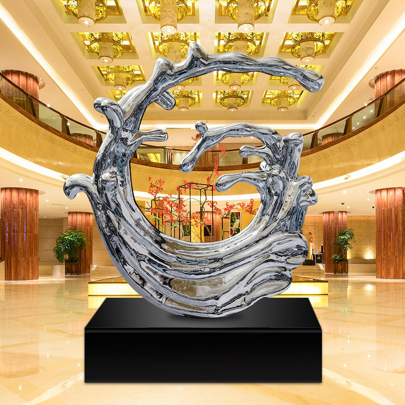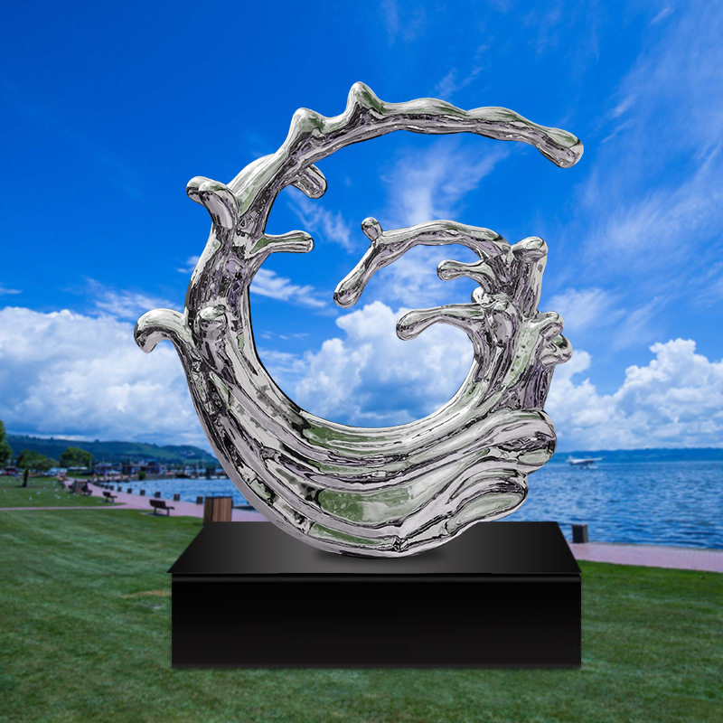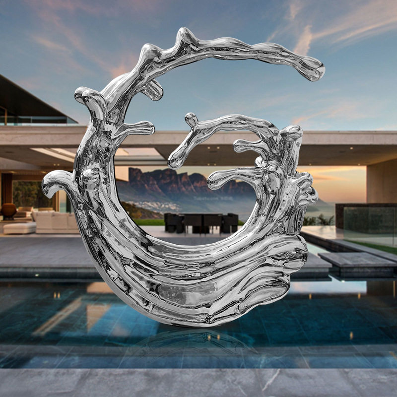 定制大型户外抽象镜面雕塑 水景景观雕塑 水浪花不锈钢雕塑小品