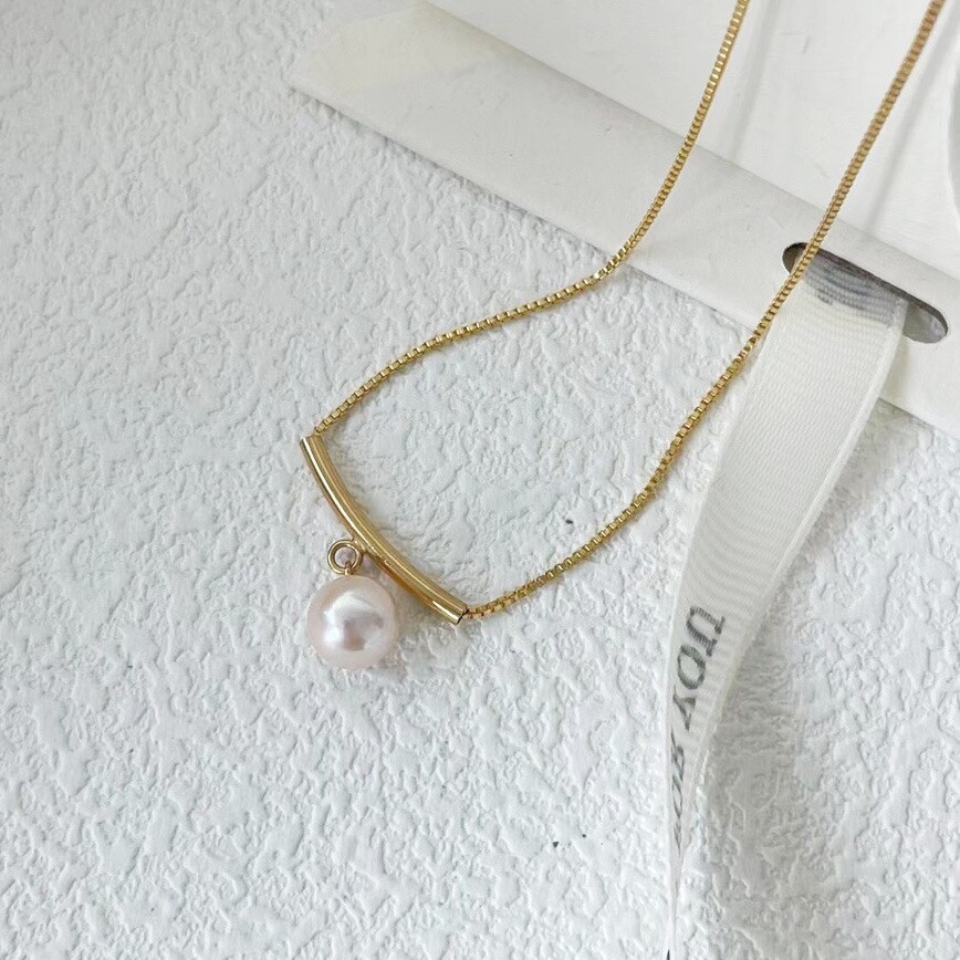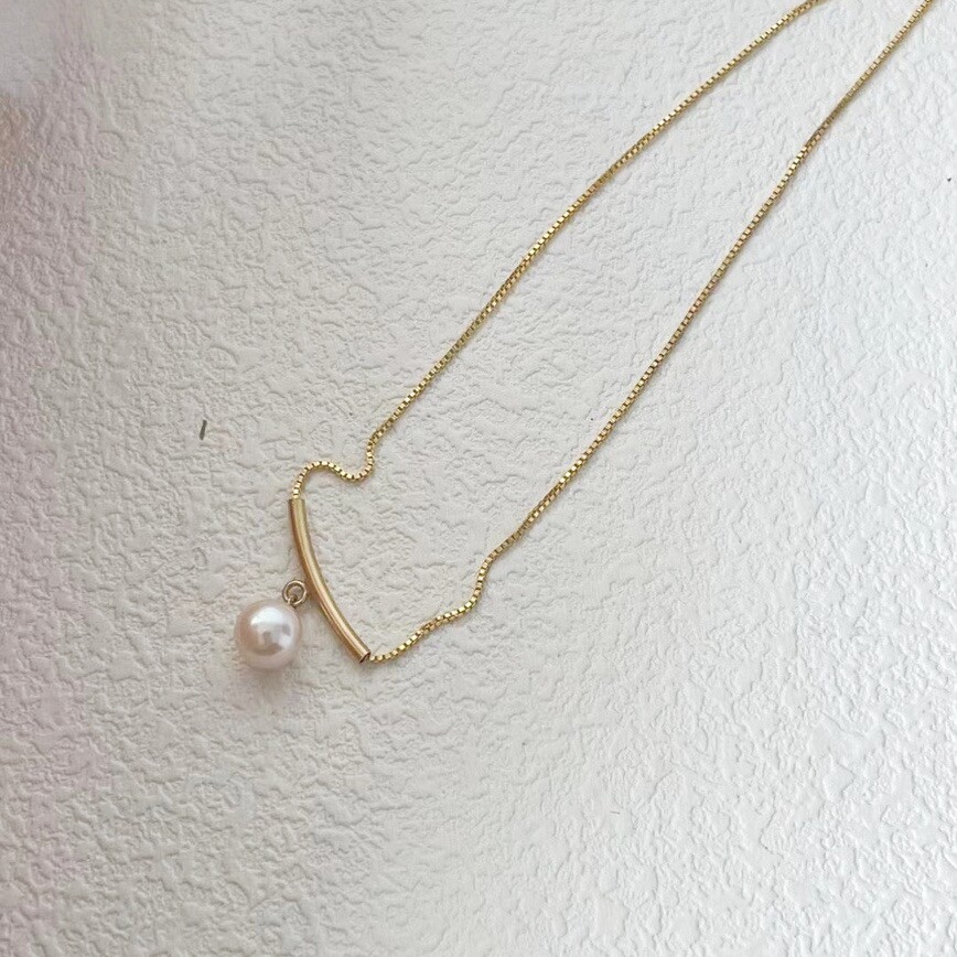 微笑弧光-浮光拾贝天然水滴珍珠项链微笑平衡木项链纯银镀金经典