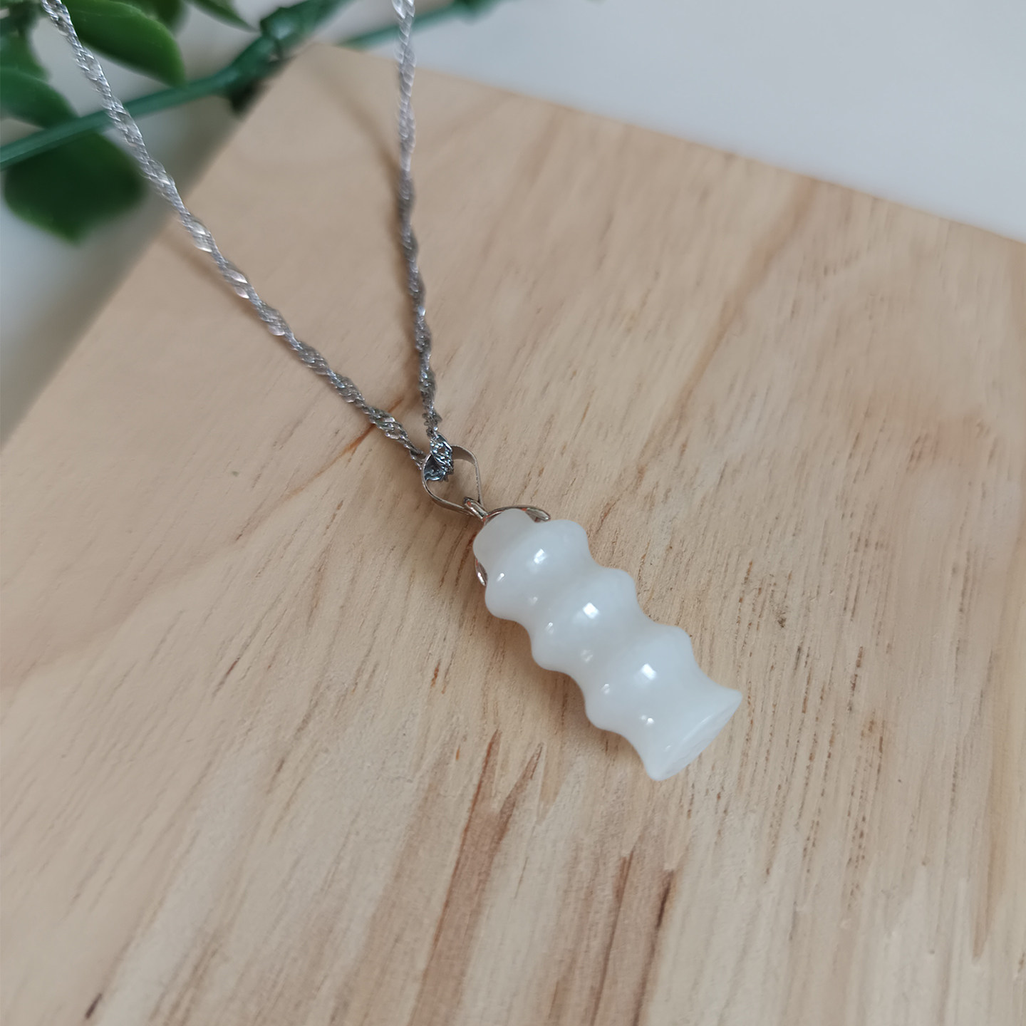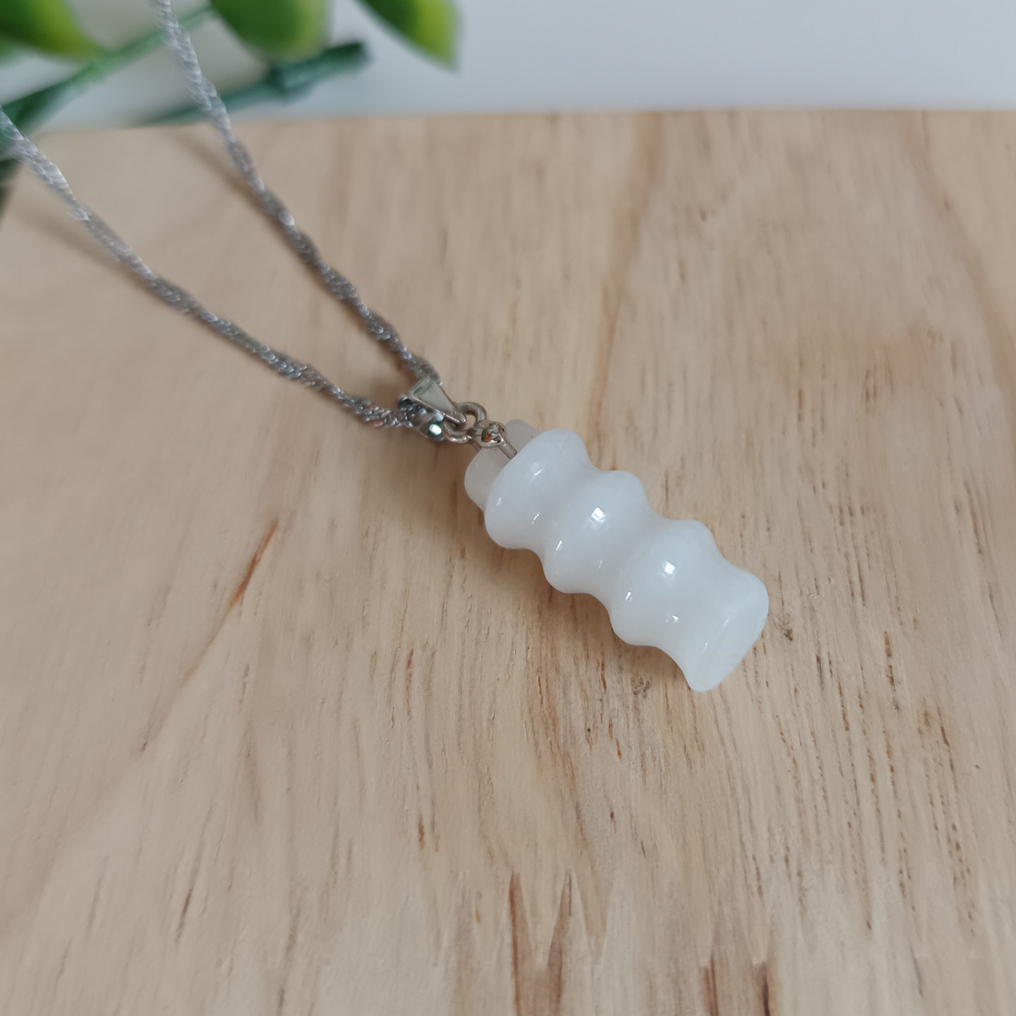 特价处理 天然翡翠玉石白色玉竹节步步高升玉吊坠项链
