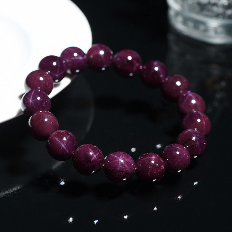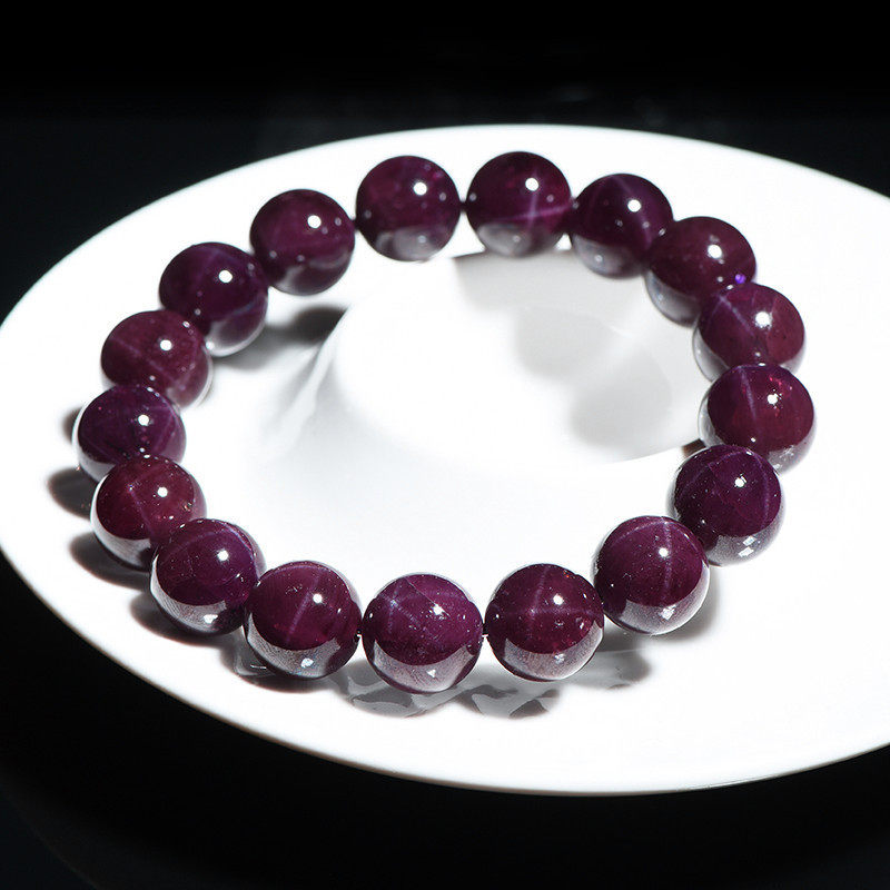 久雅水晶 天然星光紫牙乌石榴石手链紫色石榴石圆珠手串