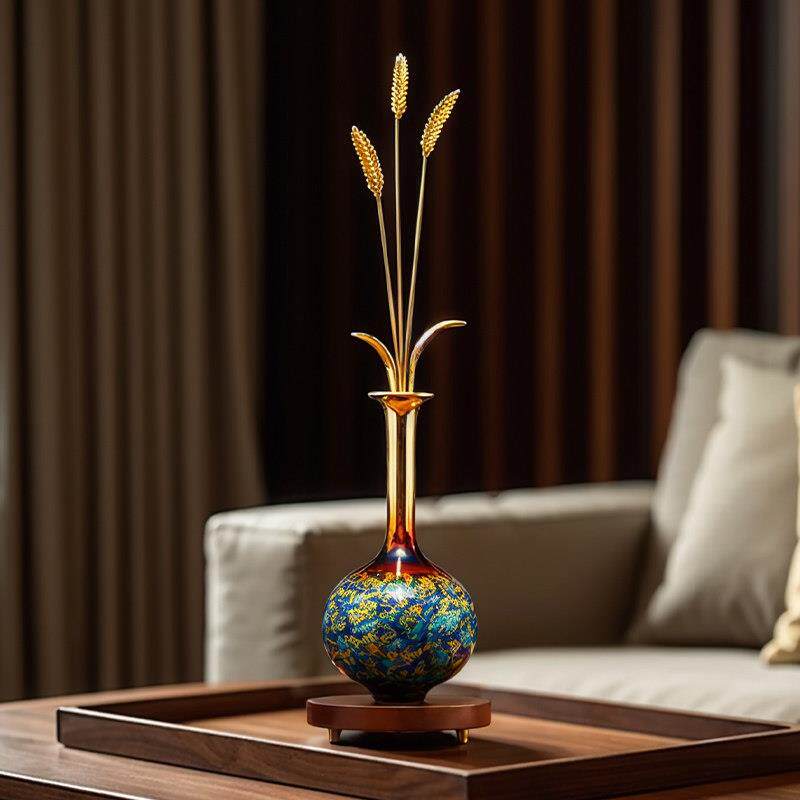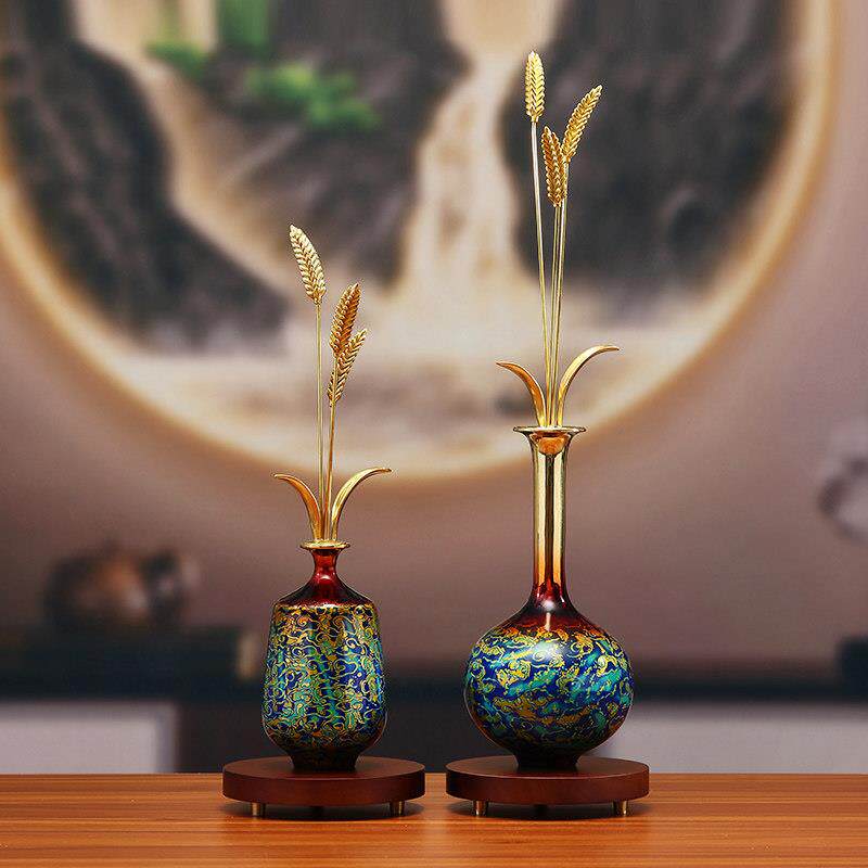 黄铜漆小麦耳花瓶装饰品可访问豪华办公室入口大厅客厅开幕乔迁礼
