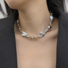 秋冬新款异形不规则仿珍珠巴洛克项链女颈链轻奢灰色串珠锁骨链潮