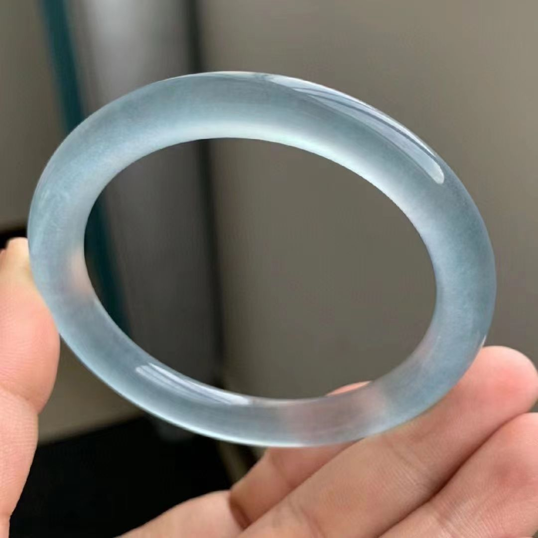 高冰种石英岩玉手镯细圆条蓝水天青冻翡翠平替库里蓝色水沫玉镯子