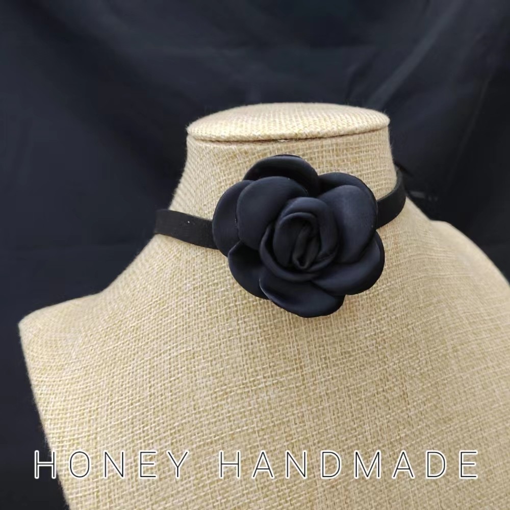 山茶花绑带系带冷艳女项圈锁骨链礼服配饰遮瑕遮疤项链秋冬晚宴风