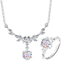 999纯银莫桑钻银项链耳钉戒指钻戒首饰套装四件套女款生日礼物女
