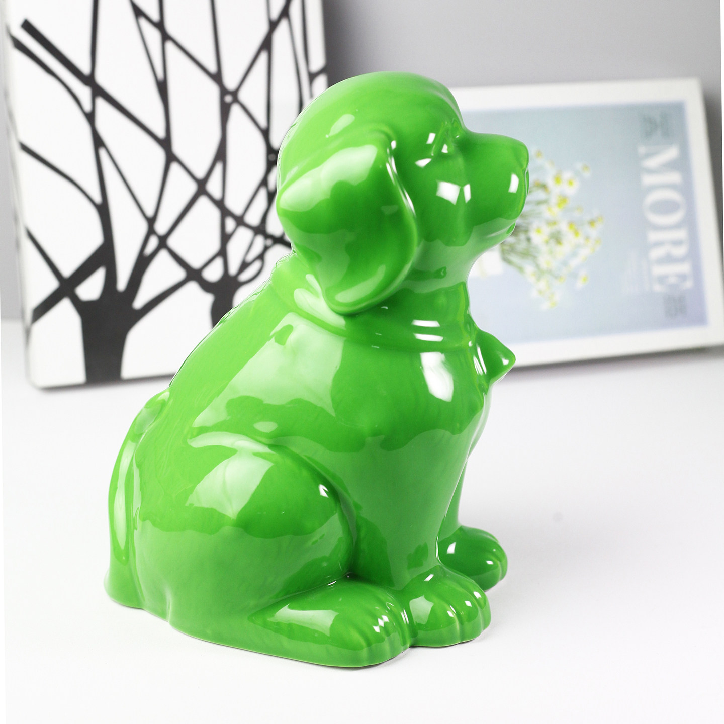 绿色陶瓷狗储蓄罐摆件办公室招财家居装饰工艺品客厅桌面装饰品