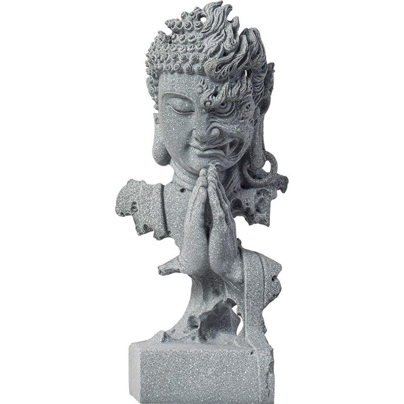 中式释迦牟尼佛像摆件创意佛魔一念之间鱼缸造景园艺茶室桌面装饰